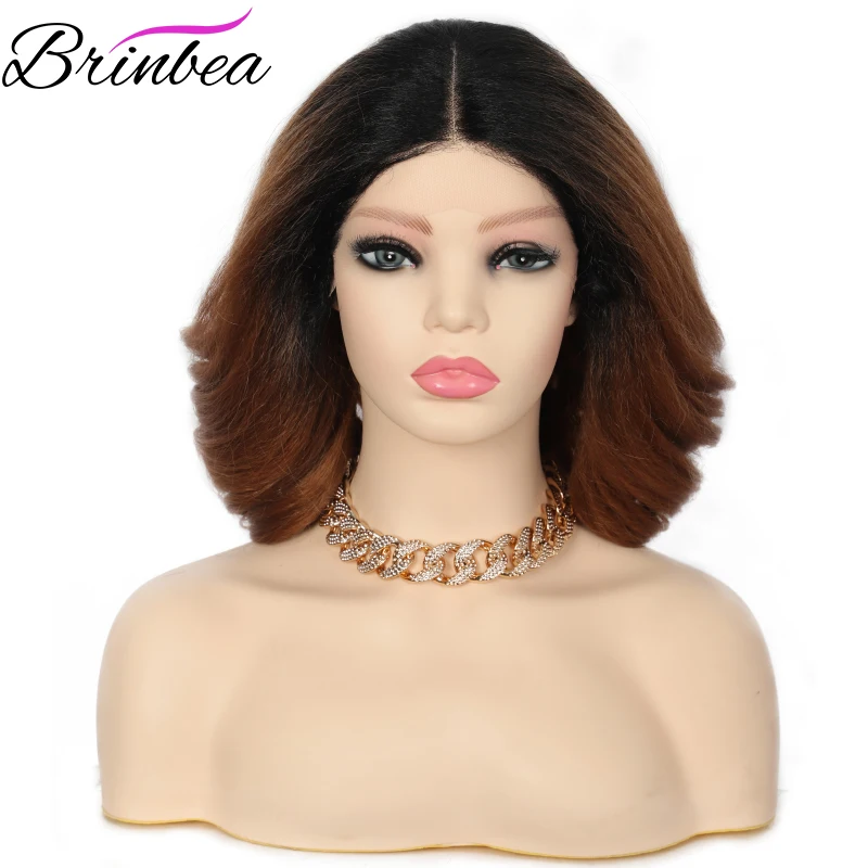 Brinbea 14 ”мягкие швейцарские кружевные передние парики с естественной детской линией волос короткие волнистые кудрявые парики для женщин средний пробор Япония-сделано Жаростойкие яки синтетические волосы парик