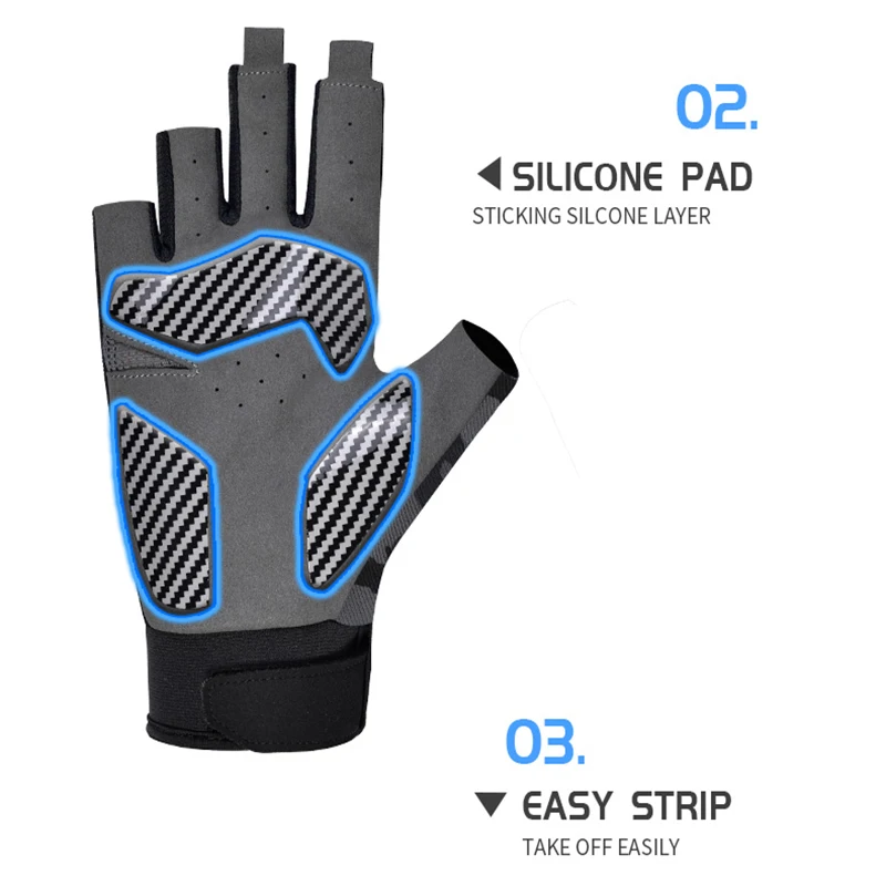 Эргономичный дизайн с полупальцами: позволяет управлять телефоном, удобно держать руль или захватывать другие предметы, пока перчатки включены. Комфортная посадка: благодаря Оттоманской Ткани перчатки обеспечивают комфортное ношение во время занятий спортом. Застежка-липучка более удобна. Воздухопроницаемое Ношение: на пальцах и ладонях есть вентиляционные отверстия, способствующие рассеиванию тепла. Противоскользящие и противоударные: уплотненная прочная силиконовая подкладка выступает в качестве амортизатора удара. Микро-волокно на ладони не обеспечивает легкость скольжения. Мгновенное быстрое удаление: благодаря специальным ушам на среднем пальце и безымянному пальцу вы можете легко снять перчатку.