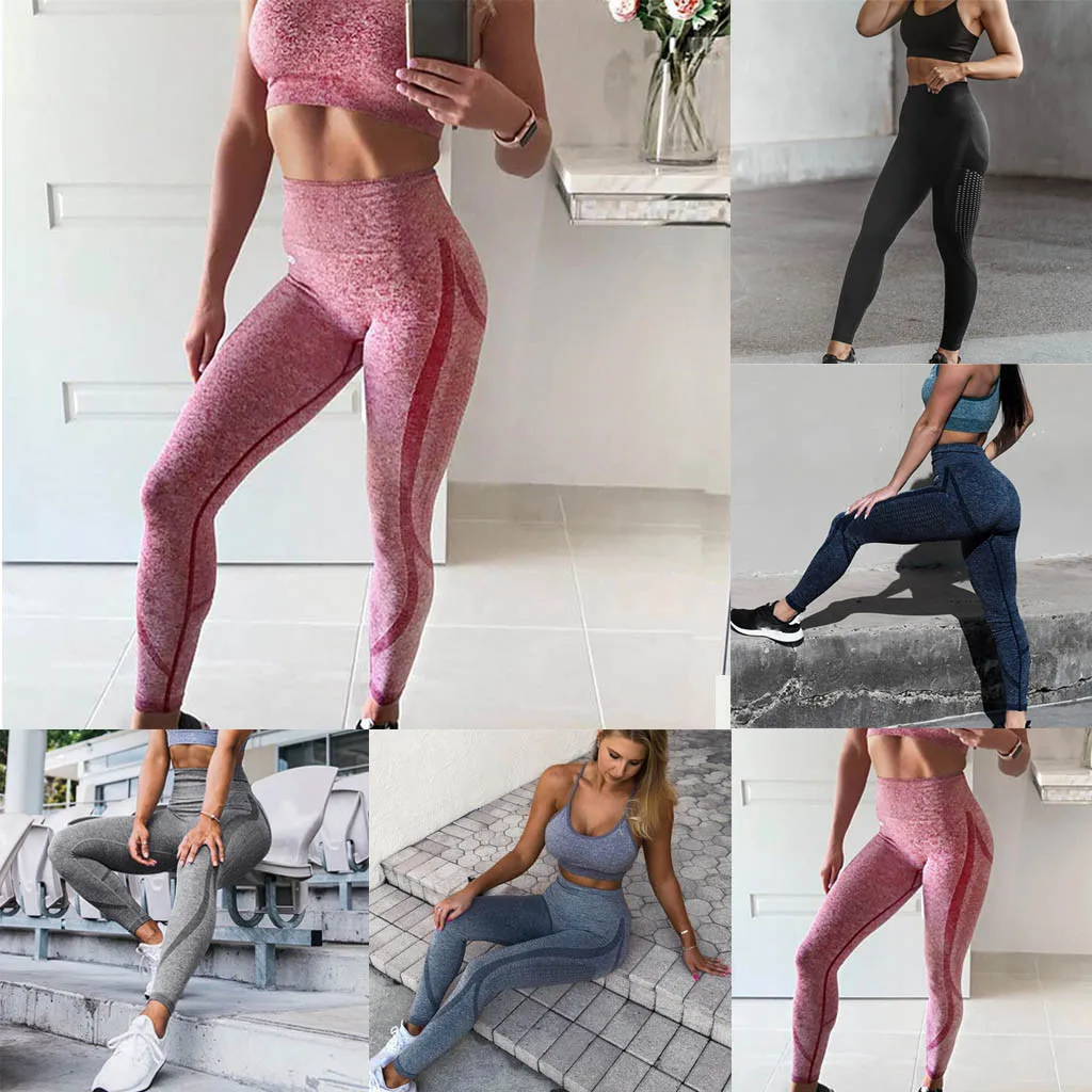 Women Ladies Fashion Solid High Waist Long Pants Leggings Running Yoga Pants
