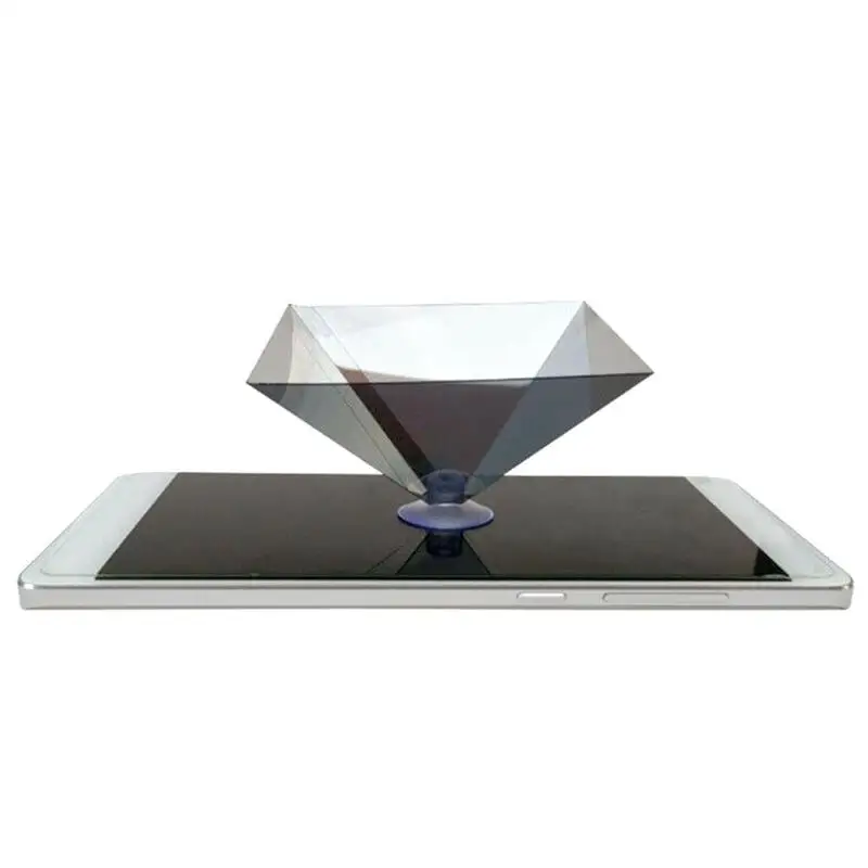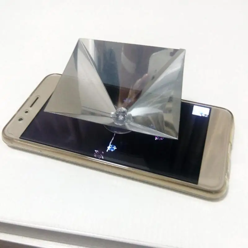 2. Просто прикрепите пирамиду к телефону с помощью прилагаемой присоски, и вы готовы начать воспроизводить псевдоголограмму со своего смартфона.