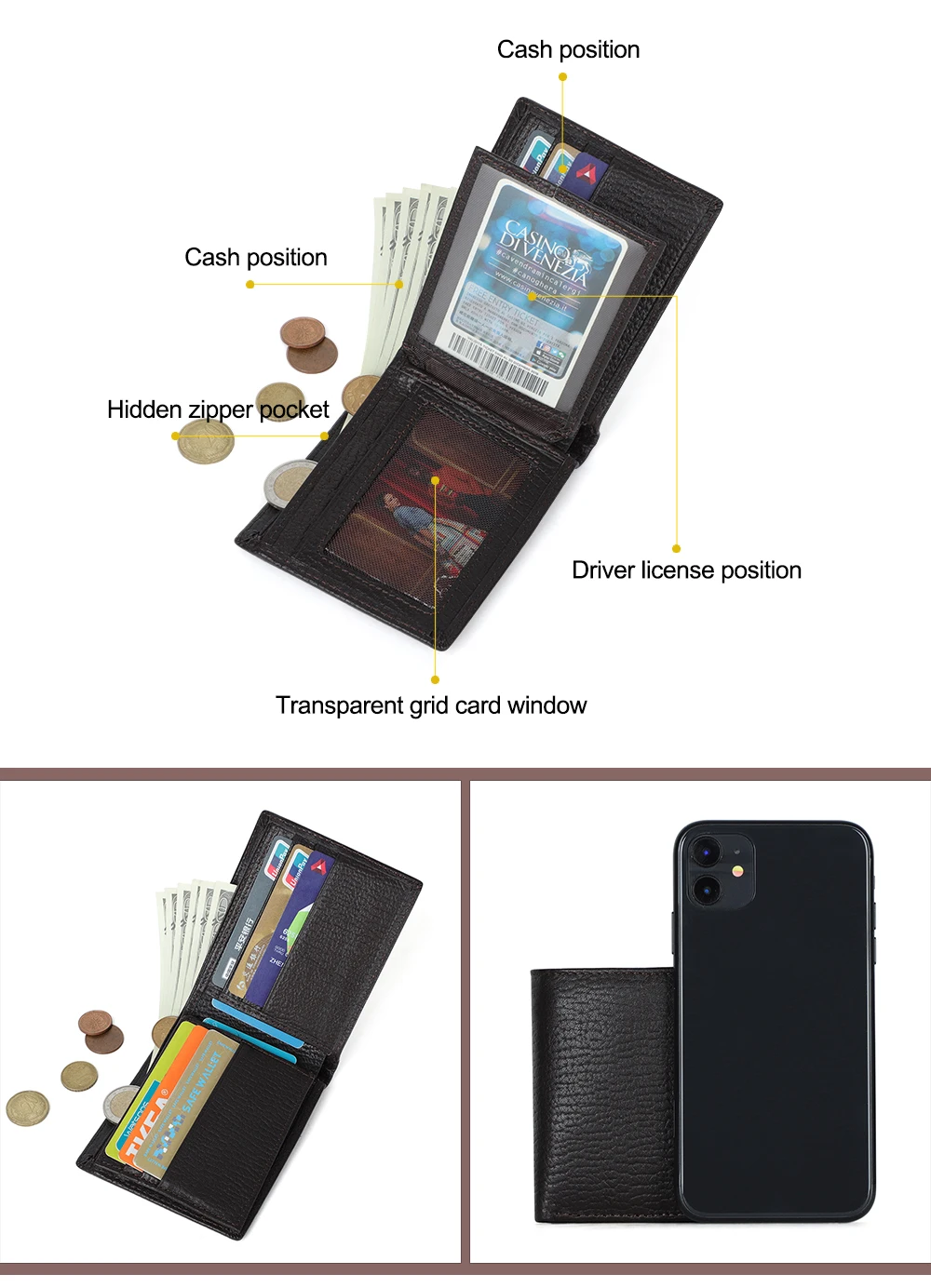 Материал: натуральная кожа Функция: Блокировка радиочастотной идентификации Цвет для заказа цвета: черный, темно-коричневый Размеры: 11*9,5*2 см