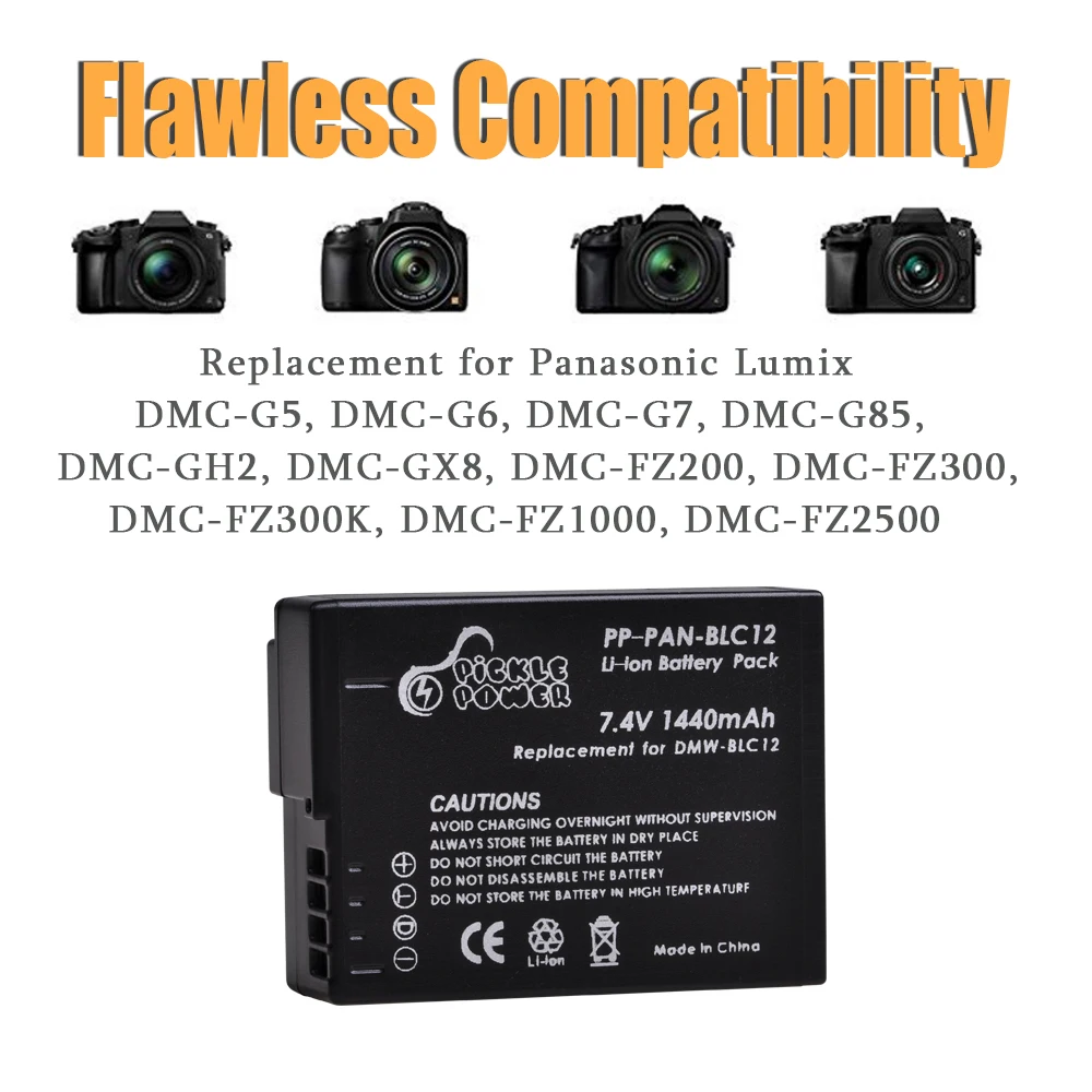 Аккумулятор Pickle Power DMW-BLC12 и двойное зарядное устройство для камеры Panasonic Lumix DMC-G85, DMC-FZ1000, DMC-FZ200