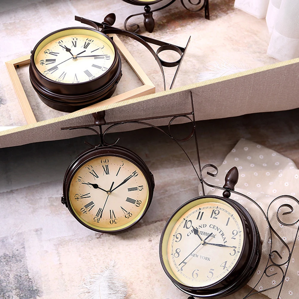Европейский классический стиль ретро, темно-коричневый цвет, двусторонний, двусторонний показ времени.