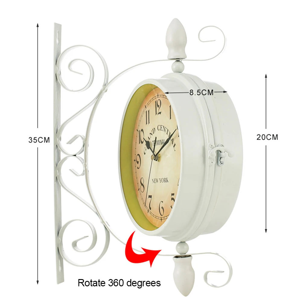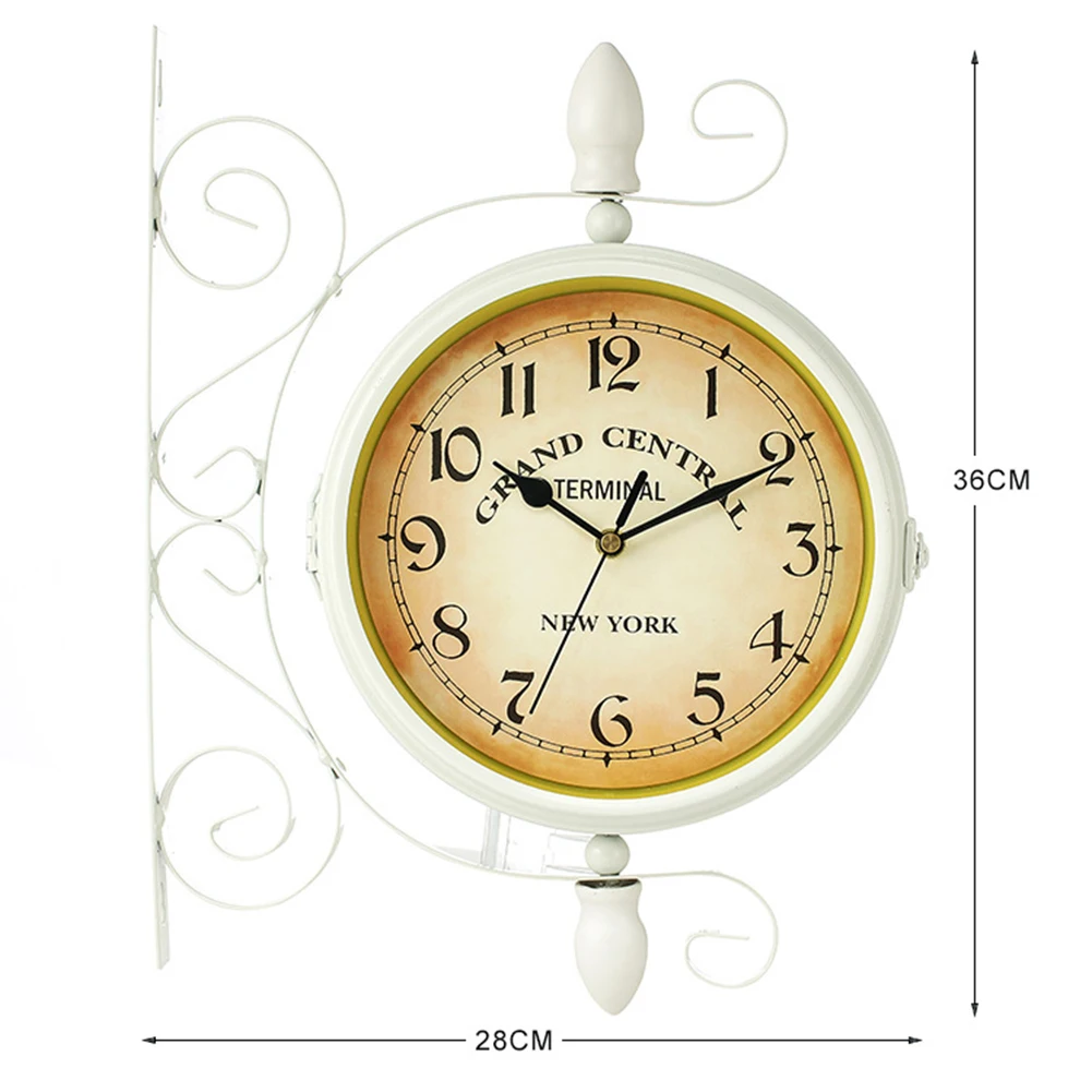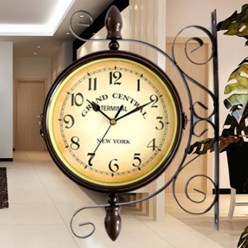 Европейский стиль ретро тихий Круглый циферблат двусторонние настенные часы украшение для дома