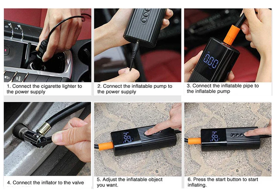 A3: может работать на автомобилях/внедорожниках/велосипедах/мотоциклах, надувных кроватях, надувных матрацах для бассейна, надувных подушечках