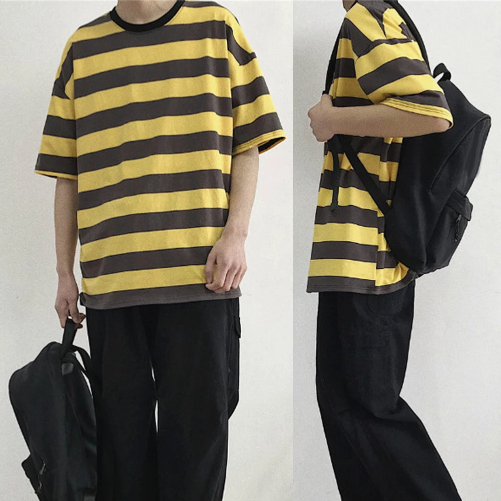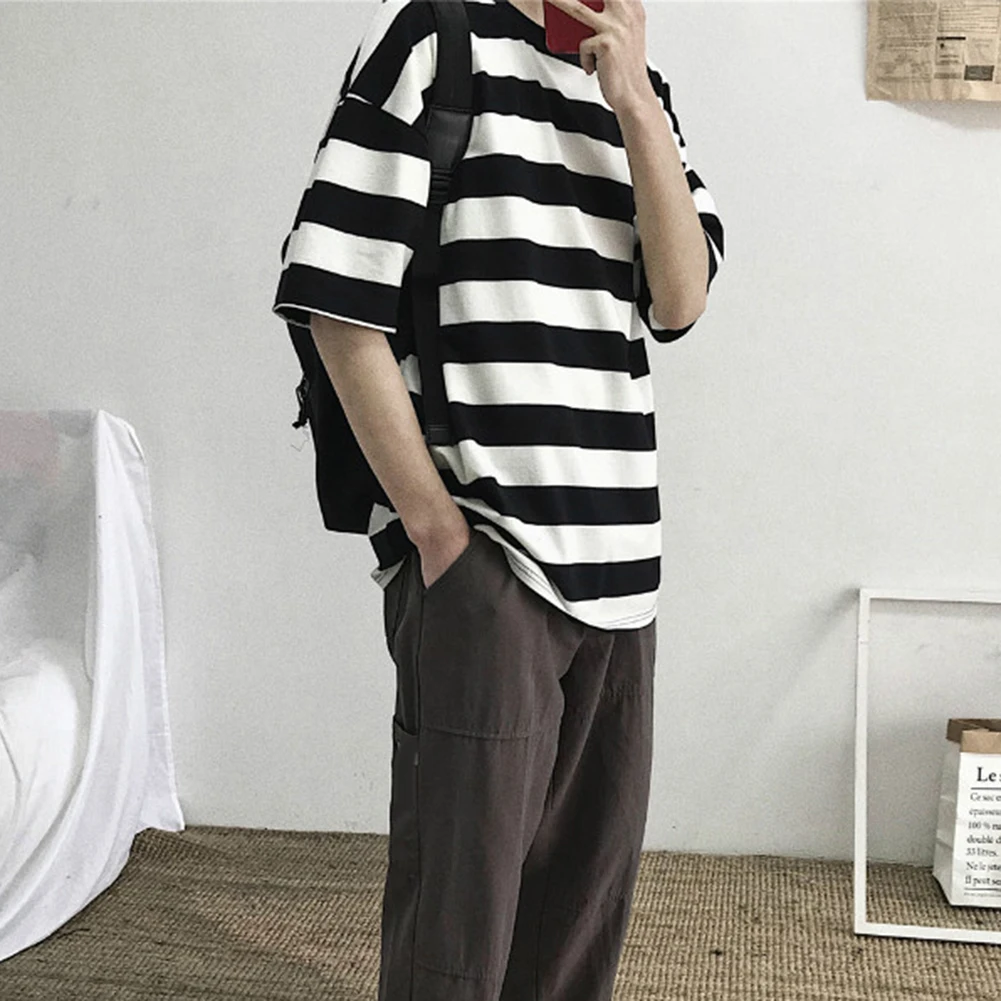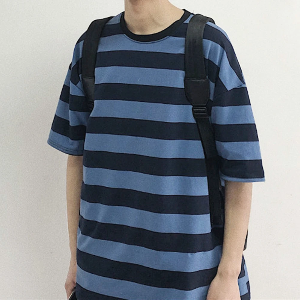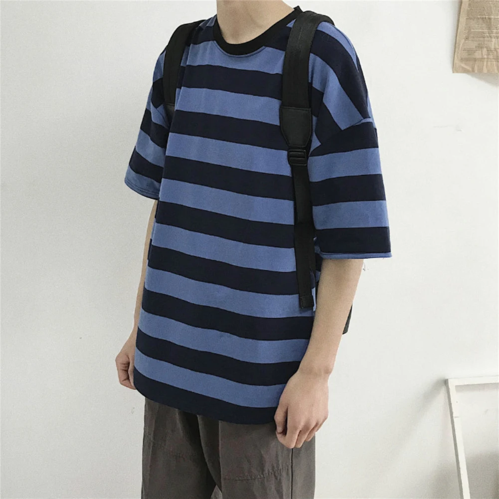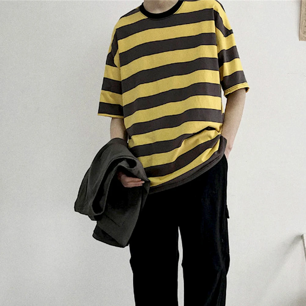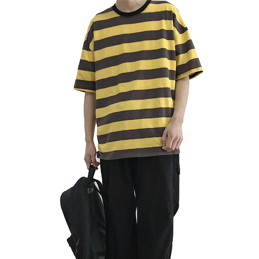 Мужская хлопковая футболка с короткими рукавами, круглым вырезом и горизонтальными полосками