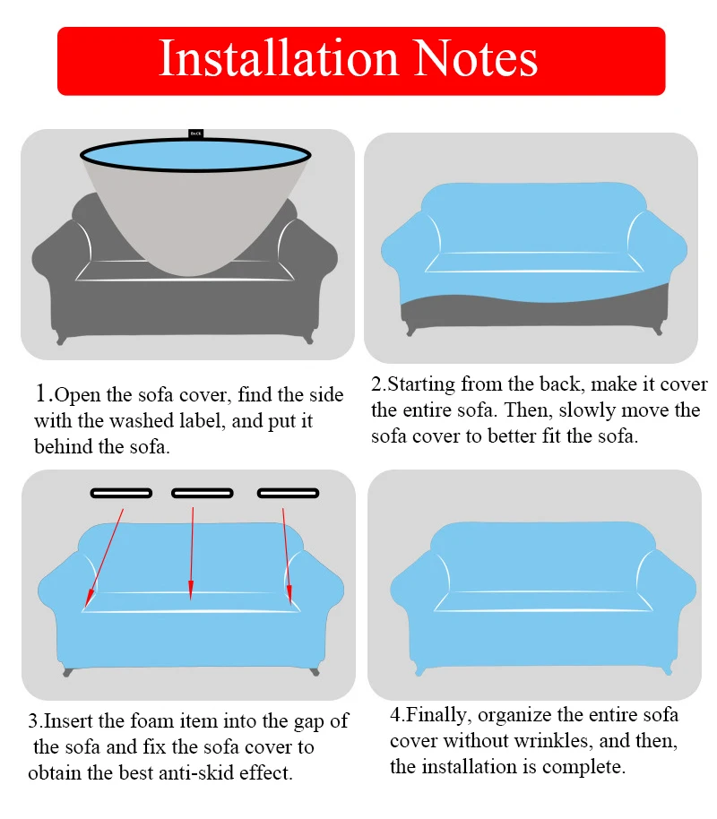 Шаг 1: Поместите чехол на диван с этикеткой сзади
