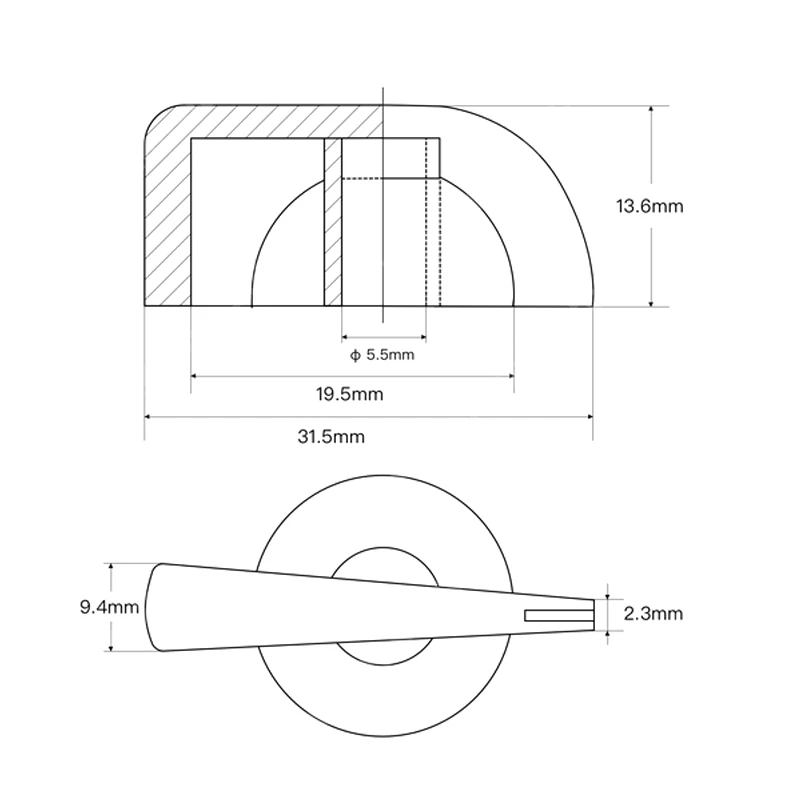 Размер: большая ручка: около 24,3x15,5 мм (диаметр x высота).