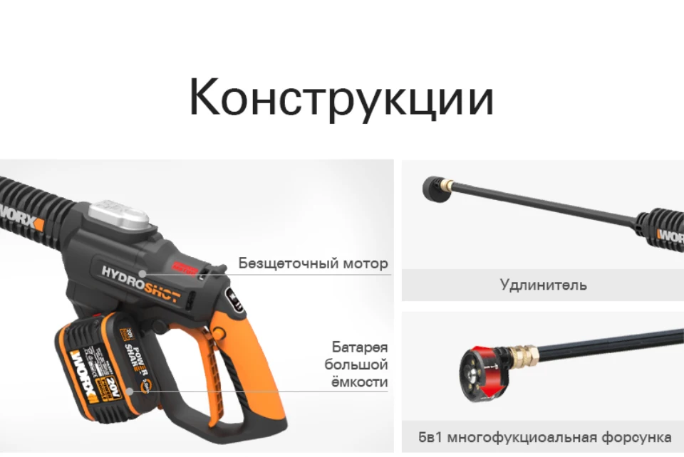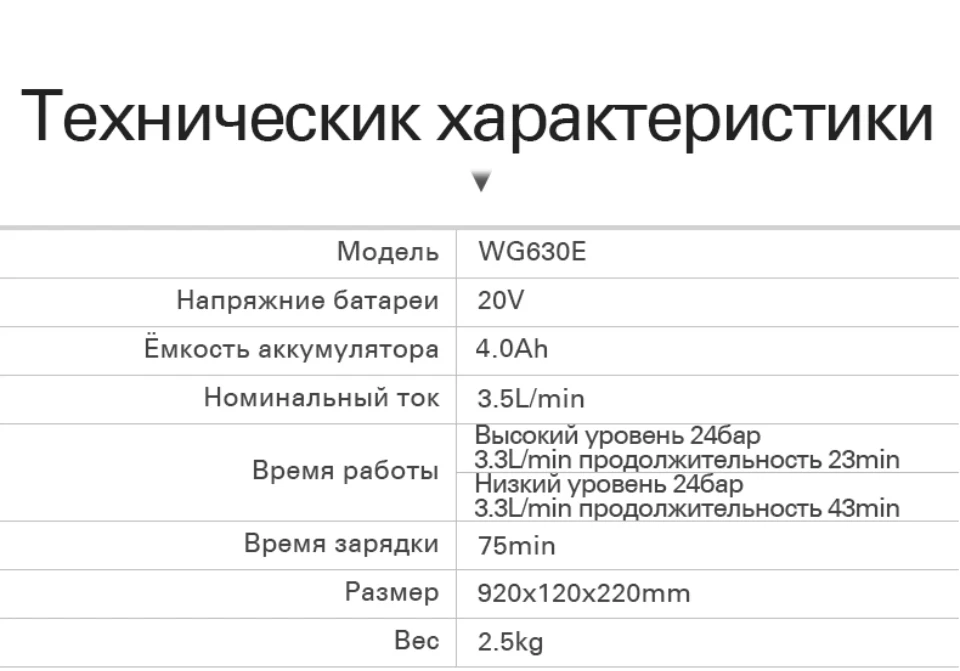 WG630E.5 20В автомойка высокого давления перезаряжаемая мойка портативная моющая машина распылительная вода ручная очиститель