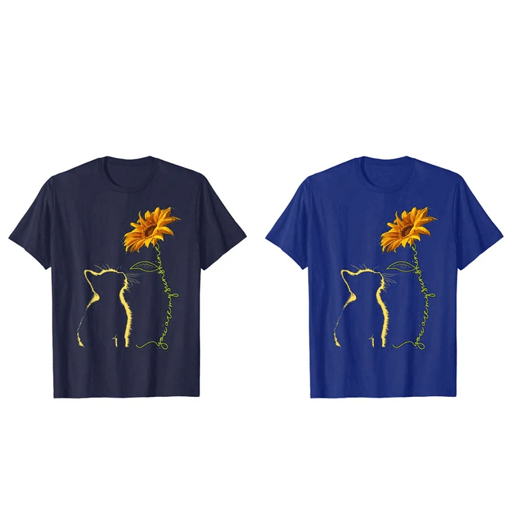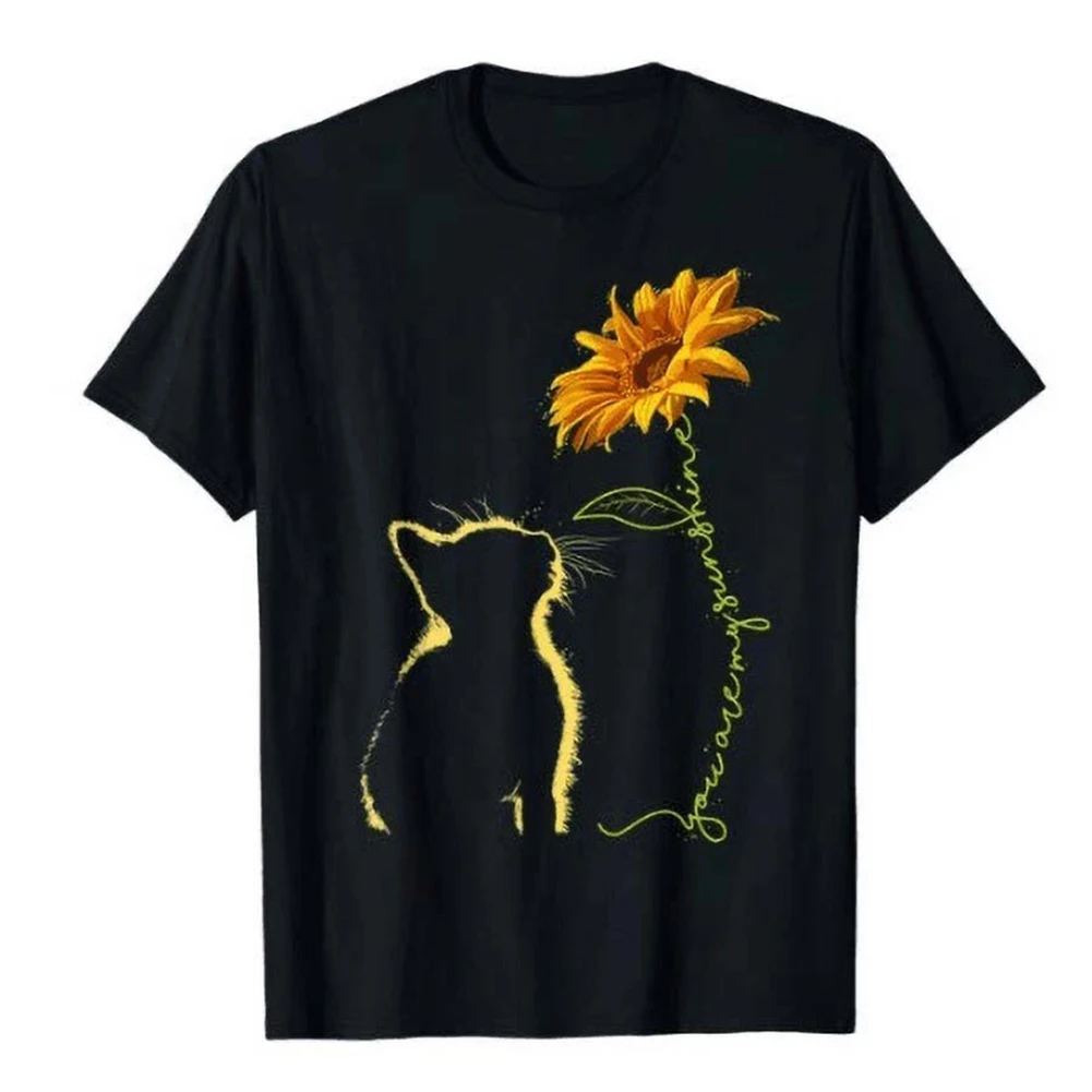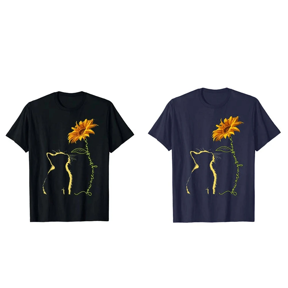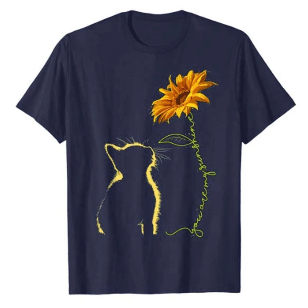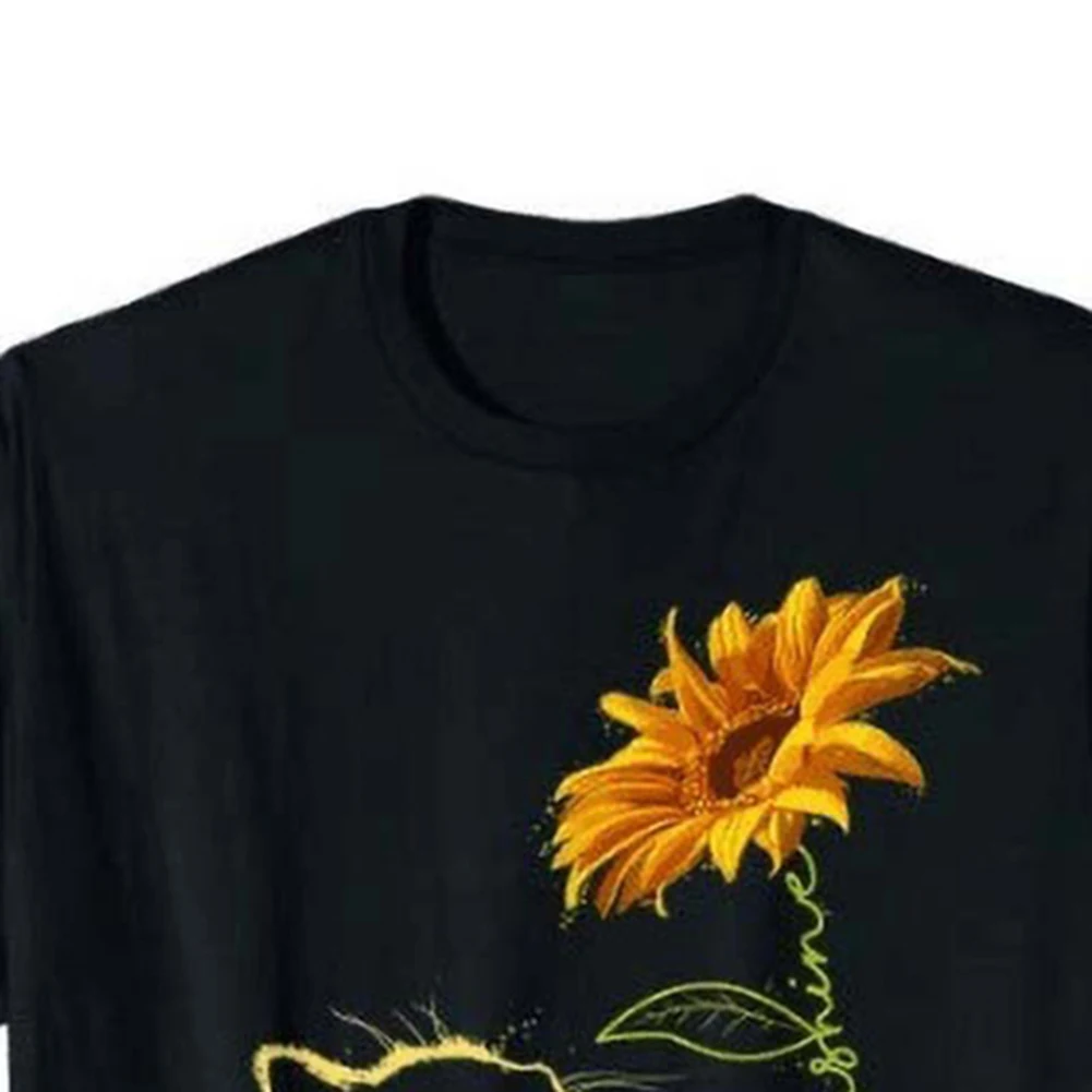 Повседневная дышащая футболка унисекс с короткими рукавами и круглым вырезом с изображением кошек и подсолнуха