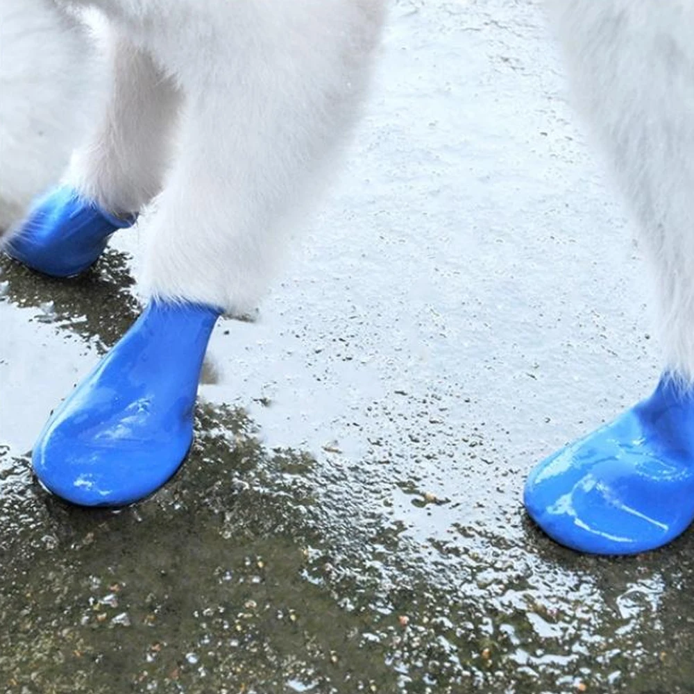 Водонепроницаемая Обувь для собак 4 шт./лот, мягкие резиновые сапоги для дождя и снега с воздушным шаром, портативные аксессуары для собак, Уличная обувь, носки