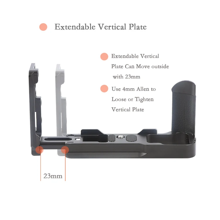 Боковая панель может быть увеличена на 23 мм Прецизионный станок с ЧПУ, изготовленный из высококачественного твердого авиационного алюминия, гладкая поверхность и устойчивость к царапинам. Быстро Отпустите, поверните и установите на камеру для горизонтального или вертикального снимка. Полностью совместим с Arca-swiss RRS Berno KIRK Sirui. Черная анодированная обработка для высокой прочности. Диаметр монтажного винта: 1/4 ". Дополнительный заказ 1/4. Упаковочный лист:L держатель кронштейна рукоятки x1Гарантия и гарантия: