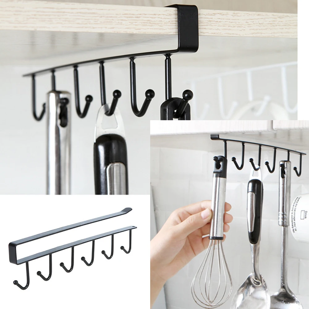 Черный/белый Железный 6 крючков подстаканник подвесная вешалка для ванной комнаты кухонный Органайзер дверная Полка для шкафа Удаленная стойка для хранения домашний декор