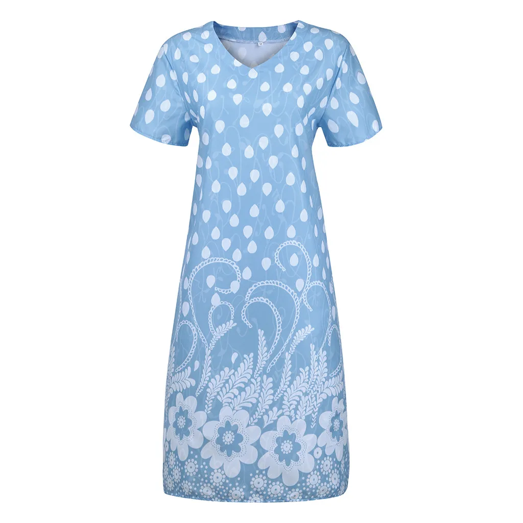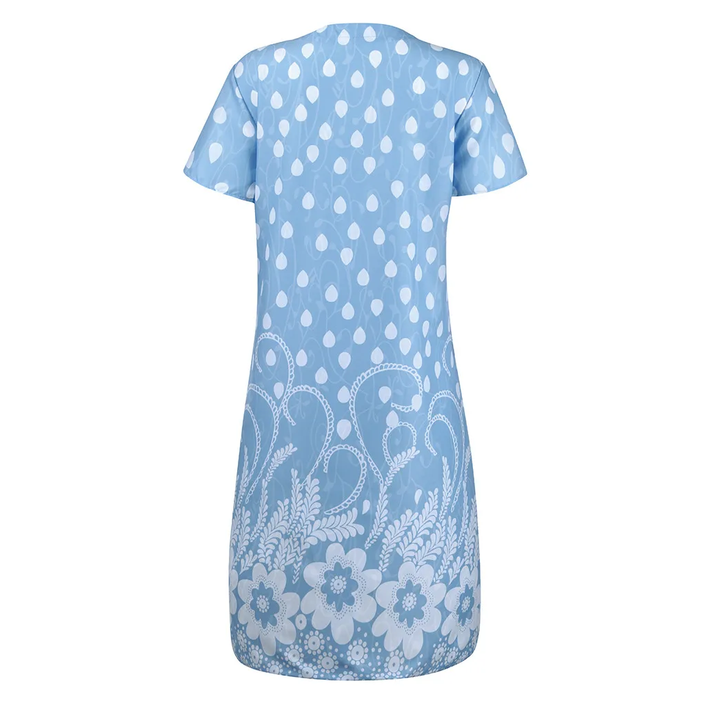 Fashion Women Casual Loose Dot Floral Print Patchwork V-Neck Short Sleeves Dress