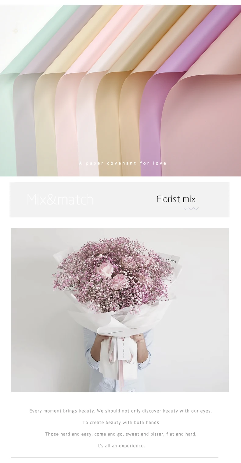 Congratulations on you to find the right supplier.We are a leading manufacturer of flowers packing materials more then 18 years 。 We have wide choice for flower wrapping paper,non-woven paper ,florist waterproof wrapping film, ribbon ,tiuss paper and so on . About us : 1 . Factory directly sales .Famous brand in China,Reliable Quality 2 . Large warehouse area of 5000 M2 ,Fast Delivery in 2-5 days 3 . Experienced technician and artist to develop and research 3-4 types new arrivals per year 4.Skillful workers , Strict quality inspection, Best services Hope to become one of your friends and business partners. Usage:Flower Bouquet Packing. Occasion:Mother's Day,Halloween,Birthday Party,Grand Event,House Moving,Chinese New Year,Graduation,Wedding,Valentine's Day,Children's Day,Father's Day,Anniversary,Back To School,New Year,Wedding & Engagement,Thanksgiving