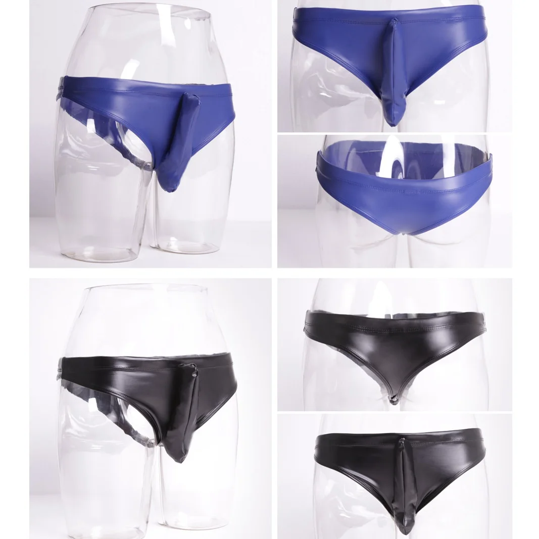 Сексуальное мужское нижнее белье из глянцевого латекса, с открытой промежностью, JJ комплект, трусы с низкой талией, домашняя одежда для геев, эротические трусы