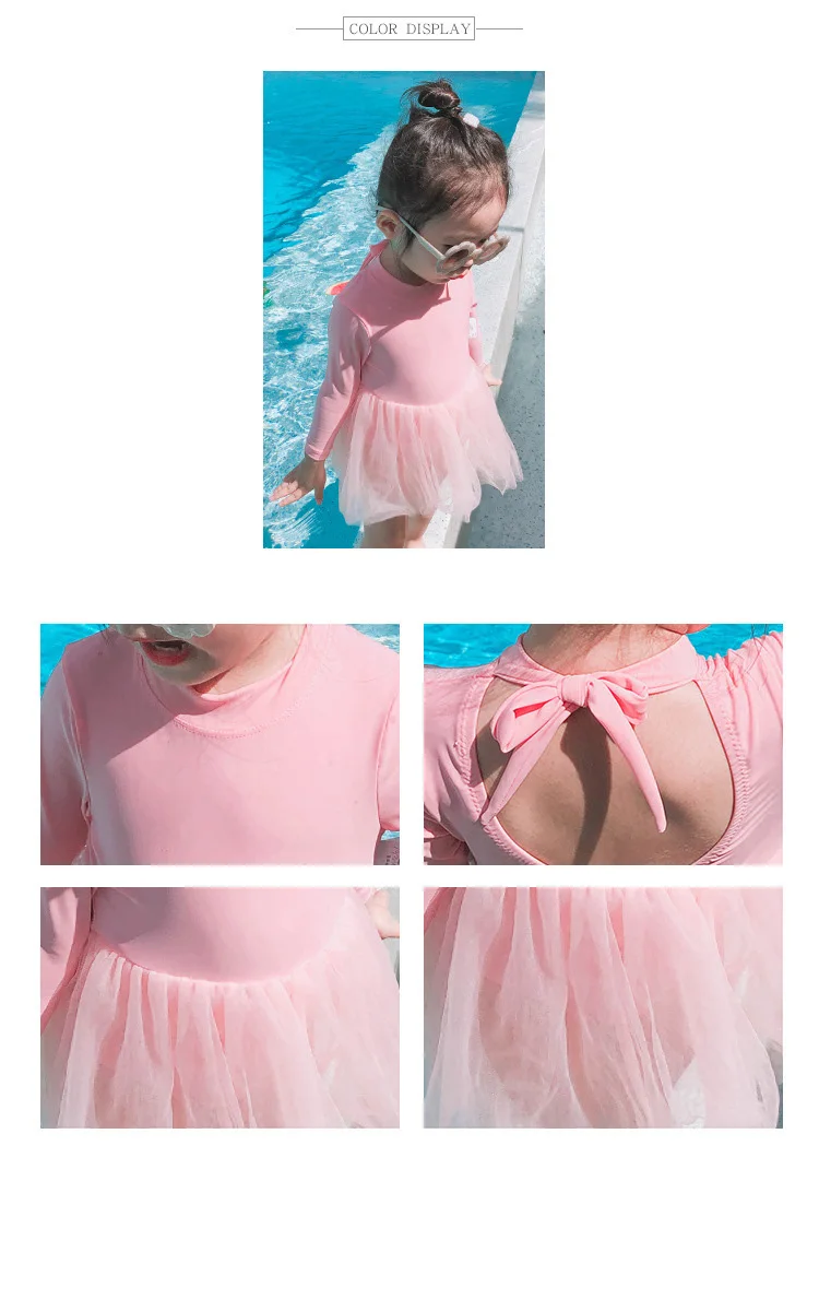 Wyoturn/юбки и купальники для девочек с длинными рукавами и открытой спиной, бандажный розовый цельный купальник, детский солнцезащитный купальник, Новинка