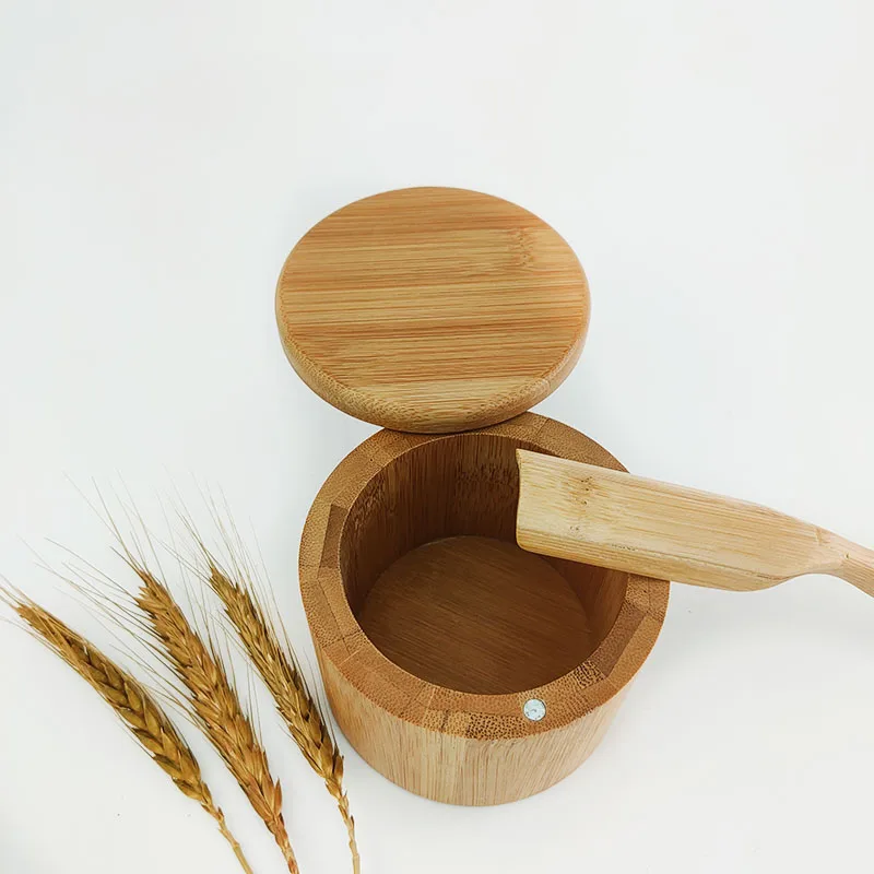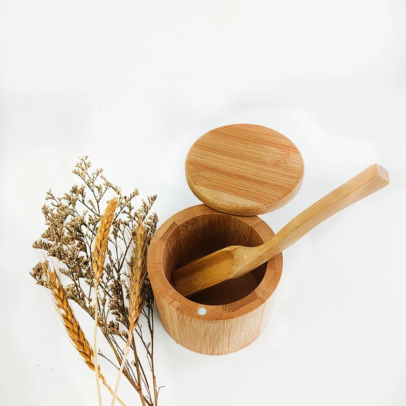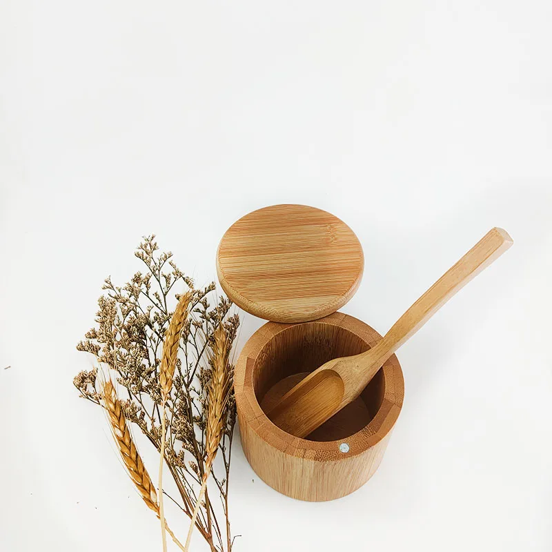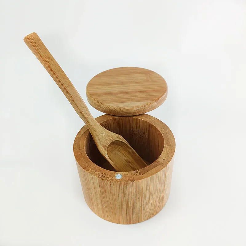 Ящик для хранения, ящик для соли с ложкой, деревянный бамбуковый ящик для хранения с магнитной Вращающейся Крышкой, контейнер для кухни, контейнер для хранения, контейнер для соли