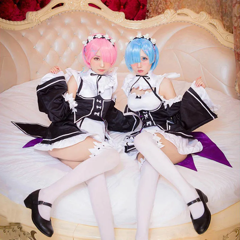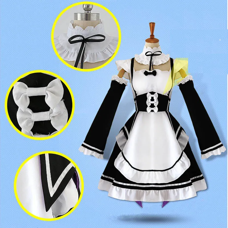 Re:Zero Rem Косплей Костюм Re: жизнь в другом мире от Zero Ram горничной юбка платье и парик Головные уборы аксессуары бесплатно