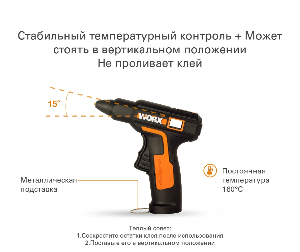 -Встроенный литий-ионный аккумулятор 2000 мА, беспроводной, перезаряжаемый -Анти-ожоги клей выход, чтобы избежать риска ожогов -4V Низкое напряжение, попрощайтесь со скрытой опасностью электричества -Отсутствие перелива, стабильный контроль температуры + Вертикальный корпус -Индикатор нагрева, 15S быстрое дозирование клея -Эргономичная ручка, удобный захват и меньшая усталость -Секторный распределительный переключатель, равномерная сила для легкого управления -Керамический тепловой элемент, быстрый нагрев, автоматическая постоянная температура, плавное дозирование клея -Латунное сопло, быстрая теплопроводность, прочный -Высокопрочный инженерный пластиковый корпус, высокая термостойкость, теплоизоляция без деформации
