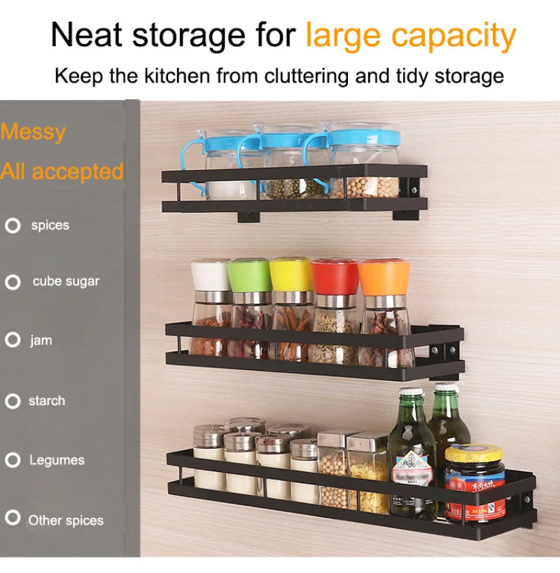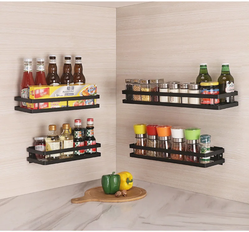 Кухонный настенный органайзер для хранения на полке Полка для специй Дырокол Бесплатная полка для хранения из нержавеющей стали Стойка для кухонной ванной комнаты