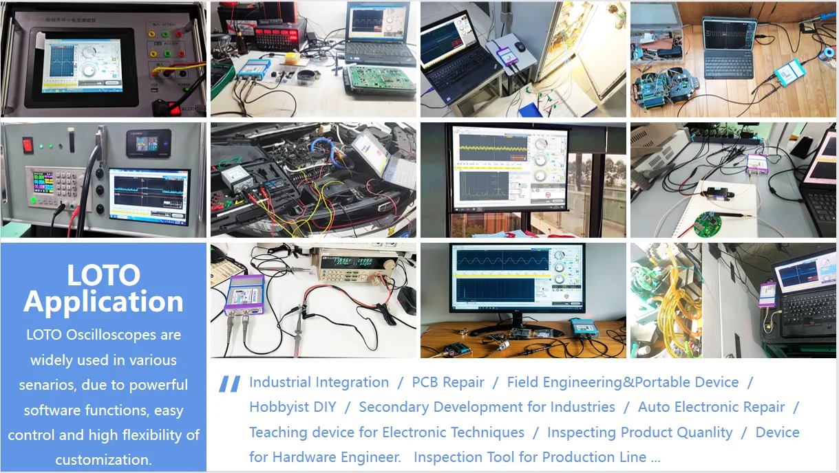 Этот продукт рекомендуется для разработки и измерения аппаратной цепи, учебного оборудования, ввода в эксплуатацию на месте, проверки кодировщика, обслуживания автомобиля, автоматизированного инспекционного оборудования, испытания пульсации мощности, проверки солнечной системы.