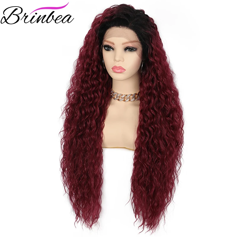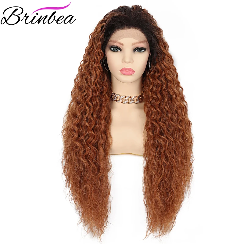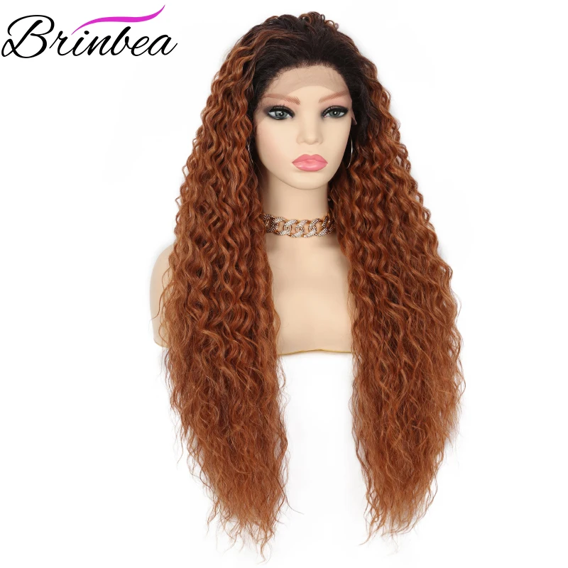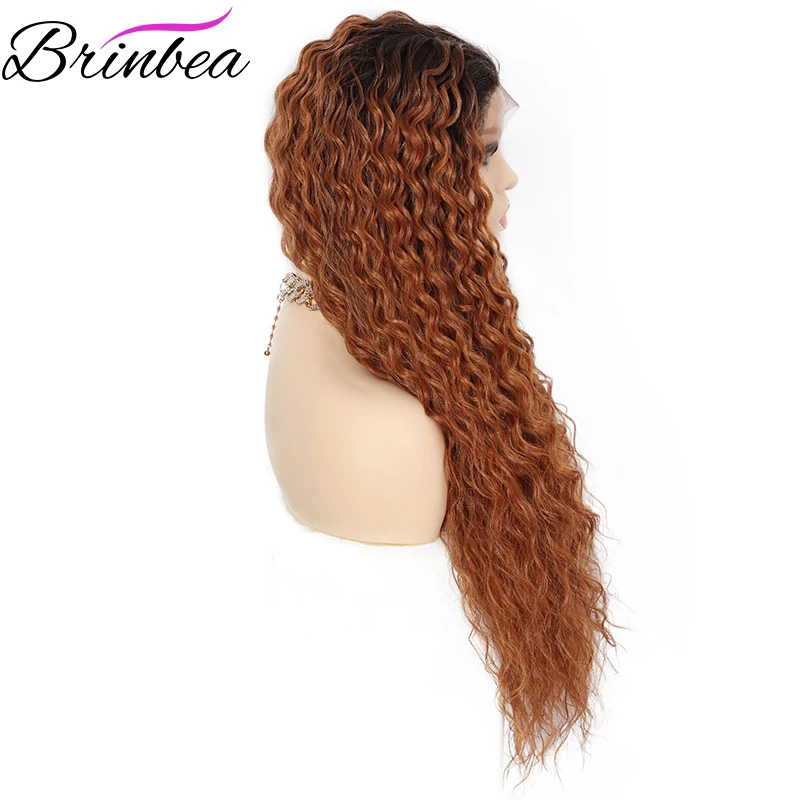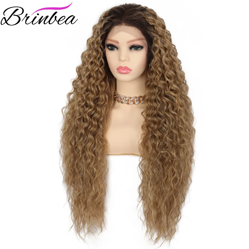 Brinbea 28 дюймов 4x4 "Многонаправленные части синтетические кружевные передние парики для черных женщин термостойкие Вьющиеся Волнистые свободный пробор 150% плотность фронтальные кружевные черные парики с детскими волосами