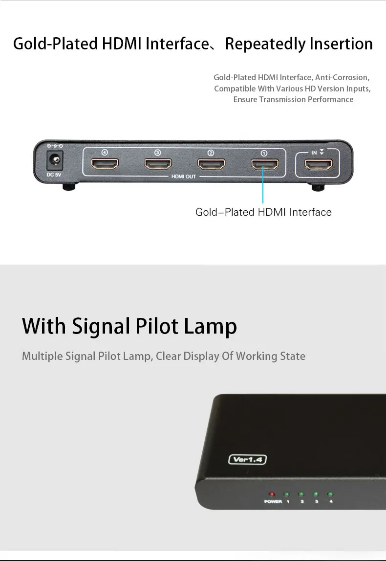 H1S4 HDMI видео сплиттер 1 в 4 out поддержка 1080P 3D 4K HD разрешение для ТВ-проектора многоэкранный дисплей
