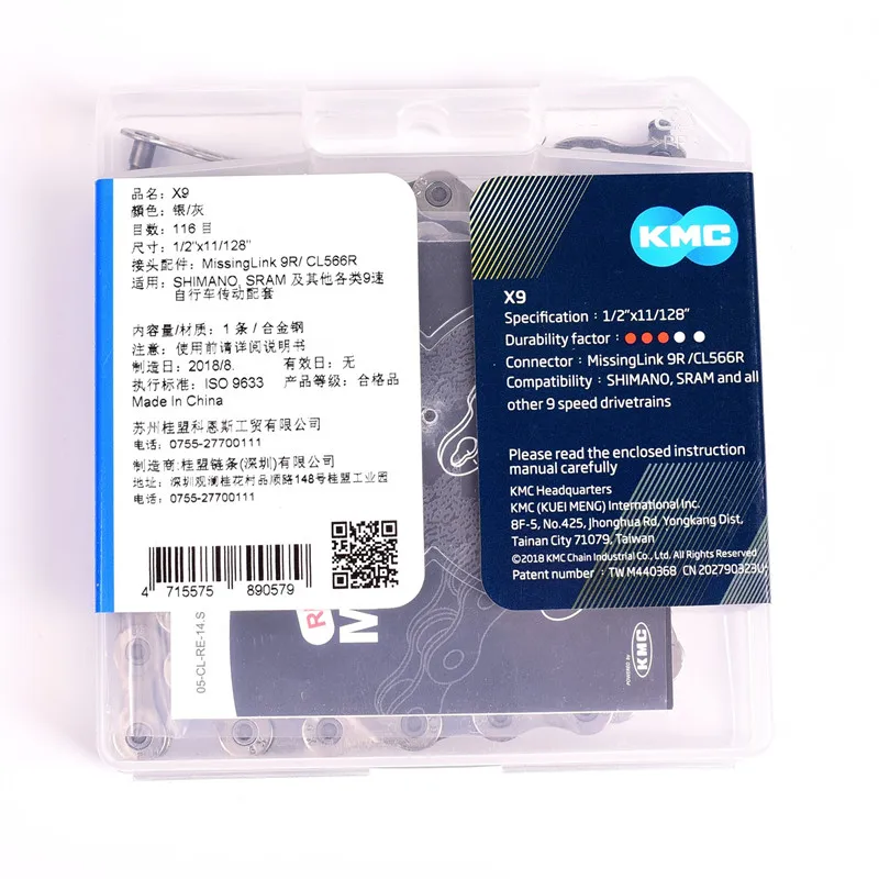 KMC X9 горный велосипед/дорожный велосипед/Складная велосипедная цепь 9/27, высокоскоростная цепь, аксессуары Бренд: KMC Модель: X9. Цвет: серебристый, черный. Длина: 116 л Размер: 112x11 / 128. Скорость: 9/27 скорости Аксессуар соединителя: MissingLink1R / CL556R. Область применения: 9/27 скоростей велосипедных коробок передач, таких как SHIMANO / SRAM / Sunrace / Campagnolo. Примечание: Пожалуйста, внимательно прочитайте инструкции перед использованием.