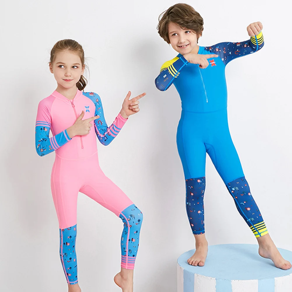 Детский Быстросохнущий Цельный купальник с длинными рукавами для мальчиков и девочек, костюм для дайвинга, гидрокостюм