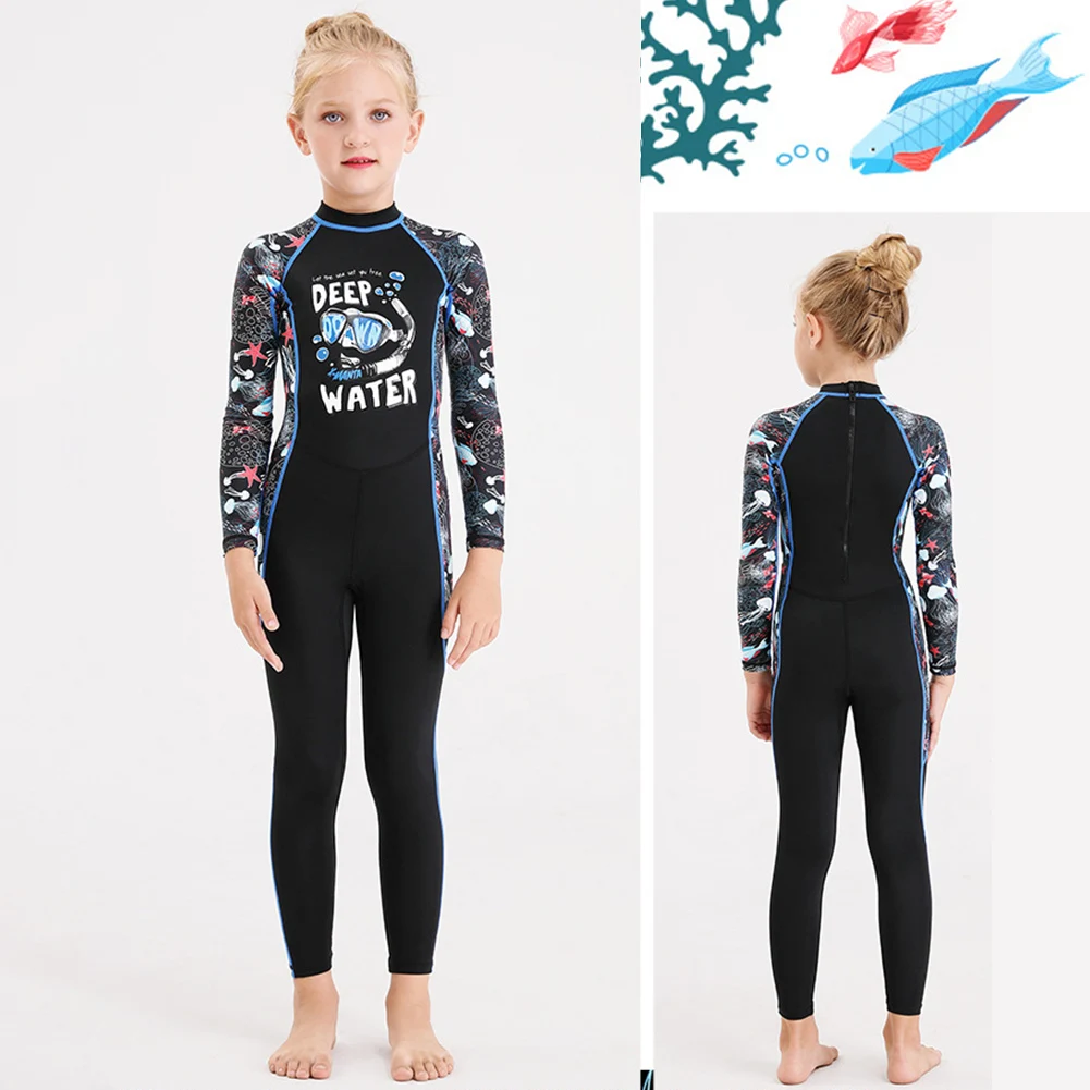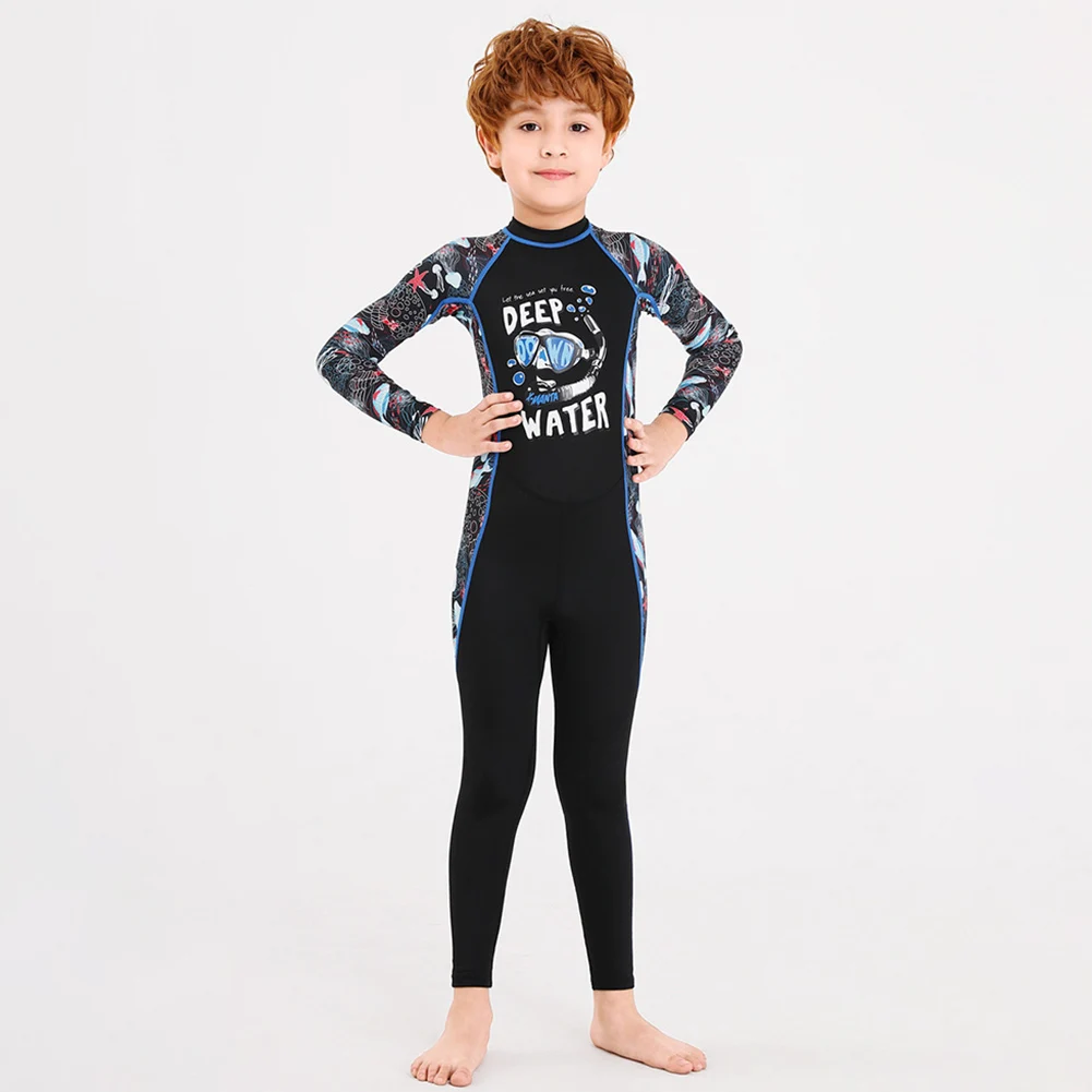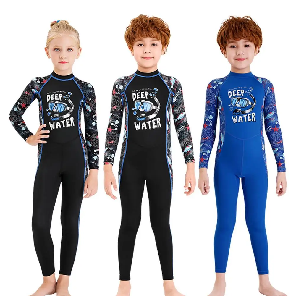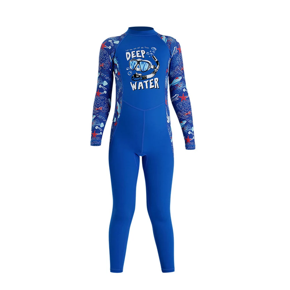 Kids Girl Boy DEEP WATER Goggle Long Sleeve Stretch One Piece Swimwear Swimsuit
