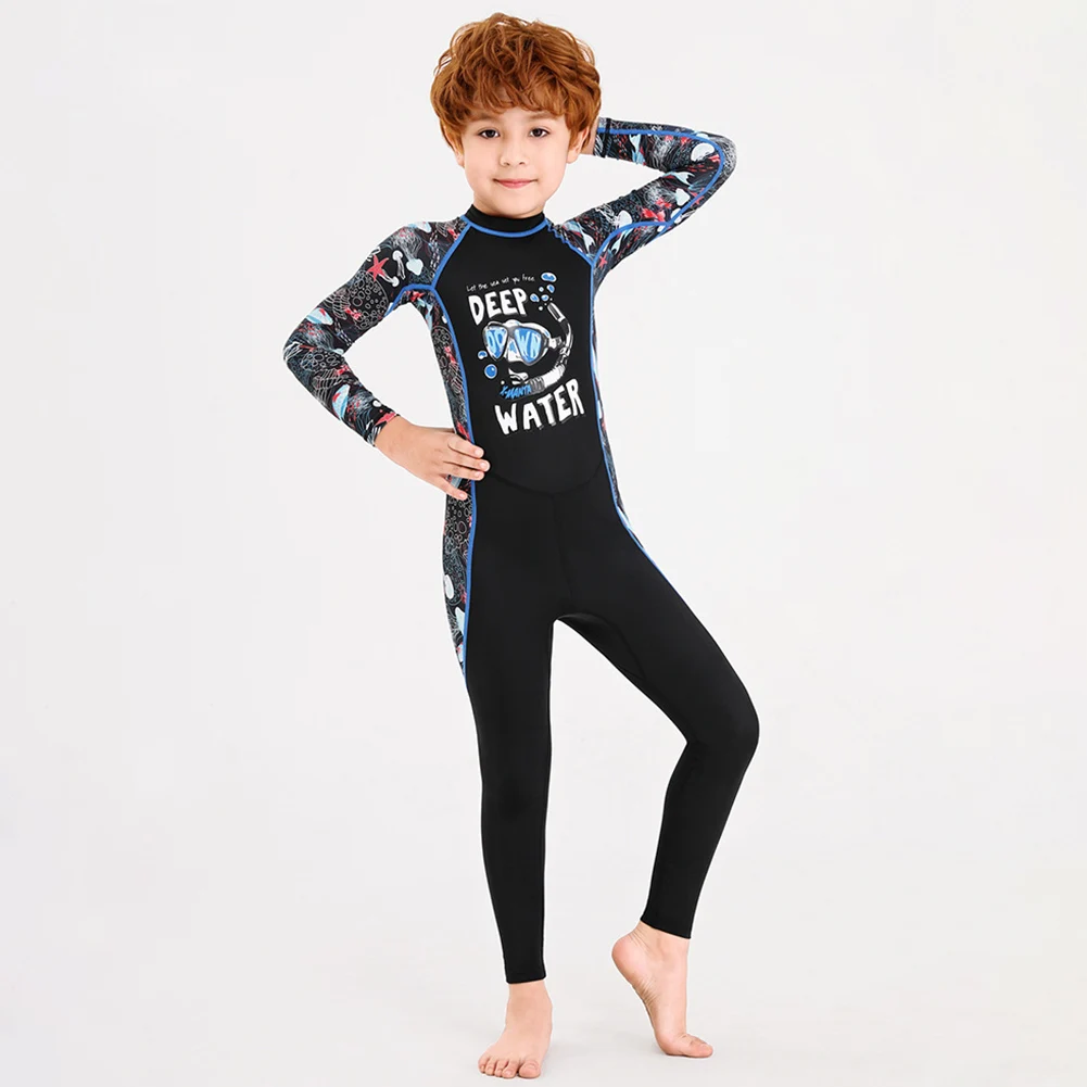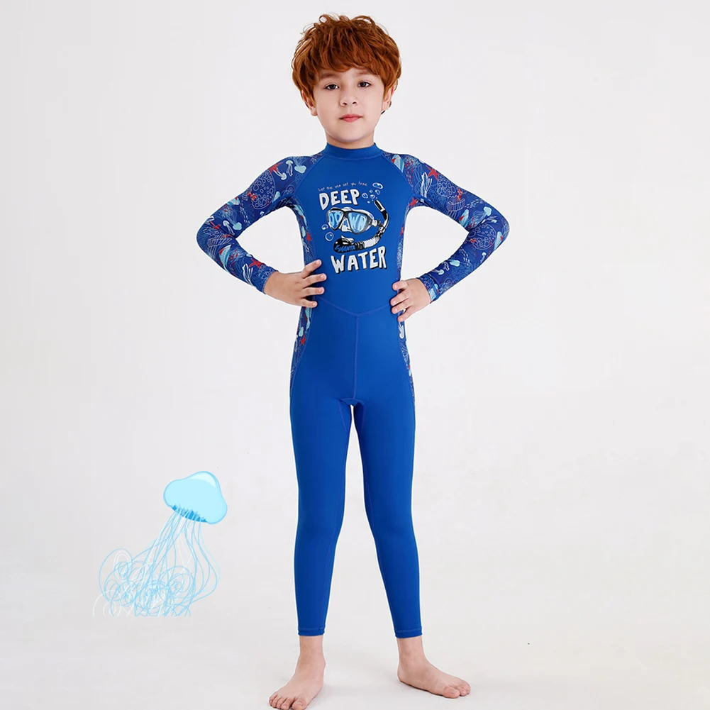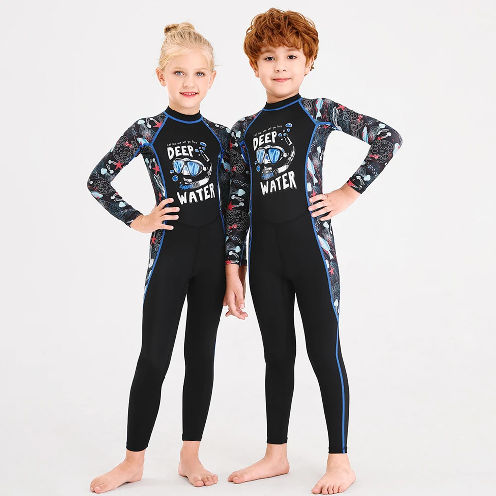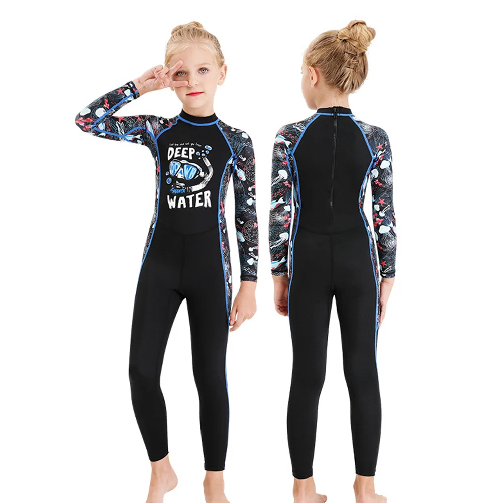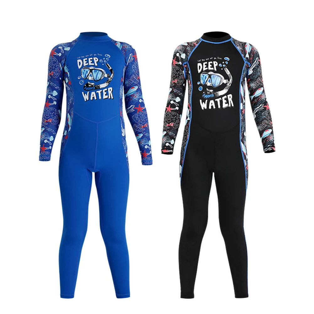 Kids Girl Boy DEEP WATER Goggle Long Sleeve Stretch One Piece Swimwear Swimsuit