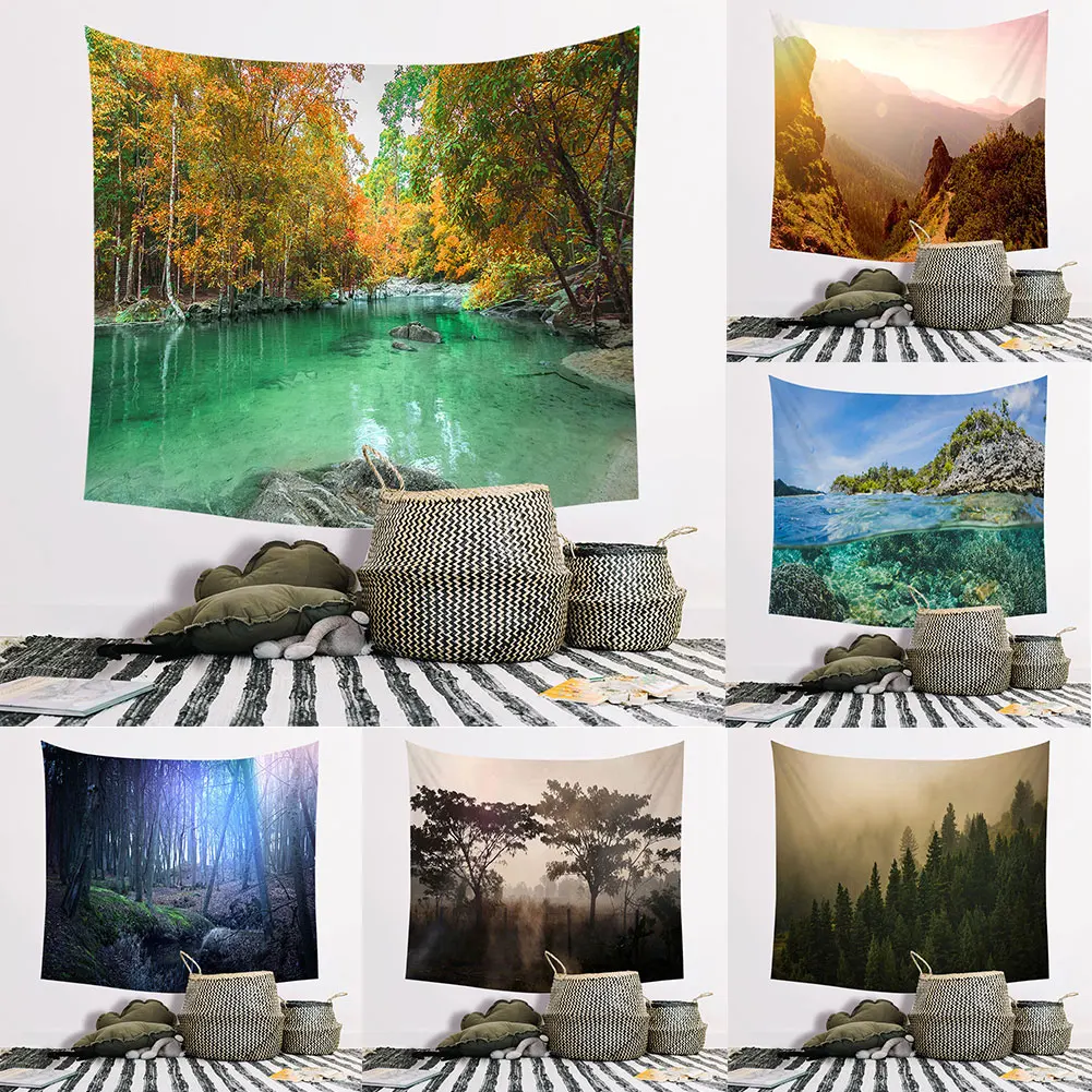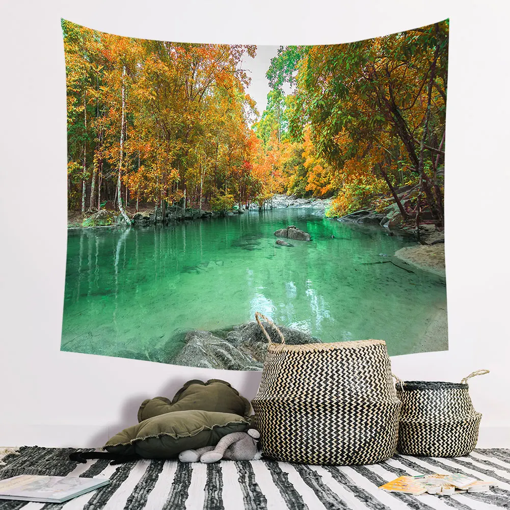 Forest River Mountain Landscape Wall Hanging Tapestry Blanket Shawl Backdrop