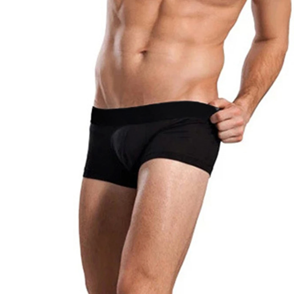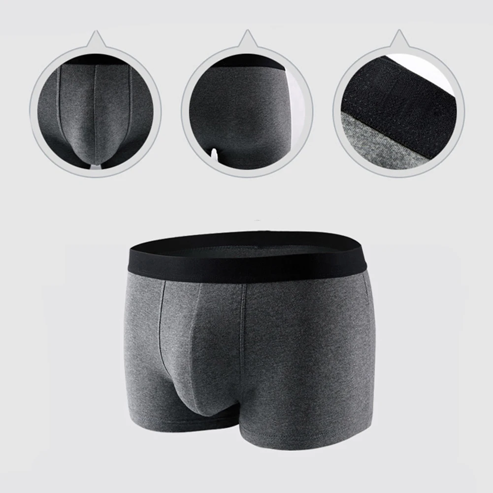 Трусы мужские однотонные из Трусы-шортики с заниженной талией хлопка с эластичным поясом, 4 шт./комплект