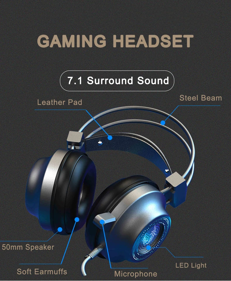 1.7.1 объемный звук: от тонких шагов до мощных взрывов, звук в игре доставляется в реалистичных деталях. 2. Всенаправленный микрофон с шумоподавлением: использование технологии захвата на 360 ° для четкого голоса и снижения уровня шума. 3. Драйвер высокого качества: с момента разработки диаметра динамика 50 мм, аудио-визуальный, как иммерсивный 4. Удобные противошумные наушники: стерео мокрого кожзаменителя, удобные, шумоизоляция 5. Крутая светодиодный подсветка, добавляющая очарование в игре, выглядит более модно.