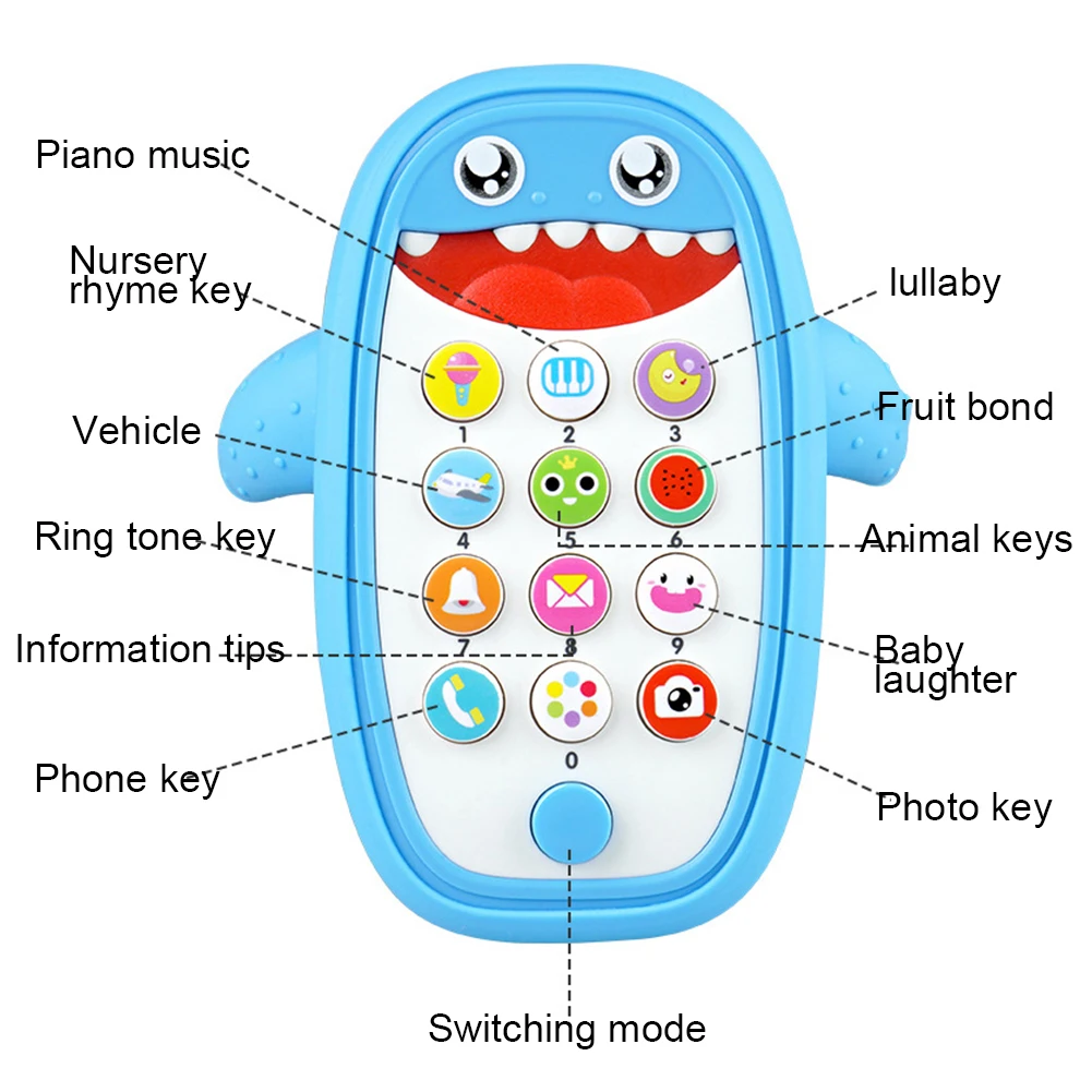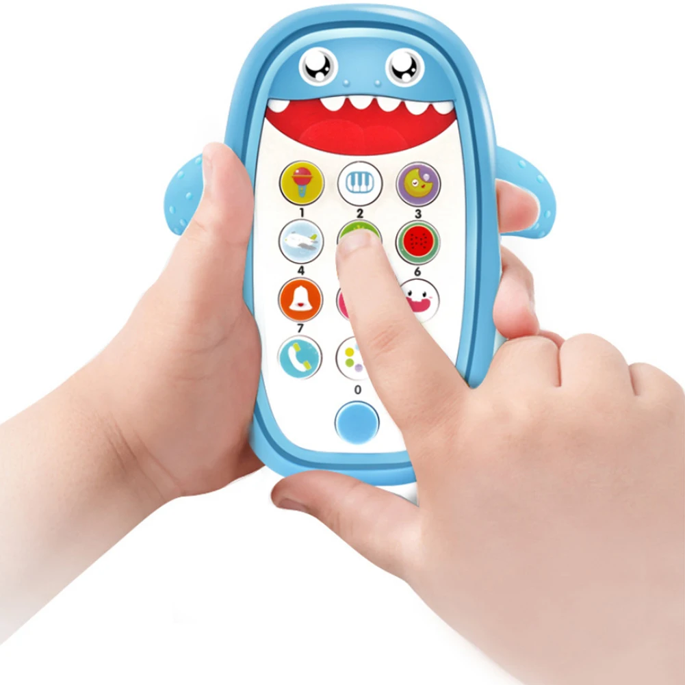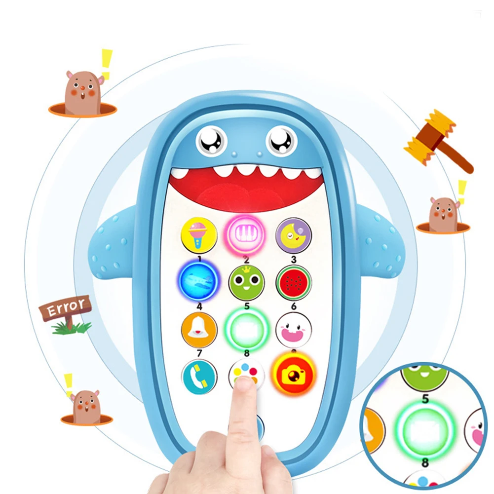 Милый музыкальный телефон с акулой, светодиодный светильник, ударопрочная крот, развивающая игрушка для малышей