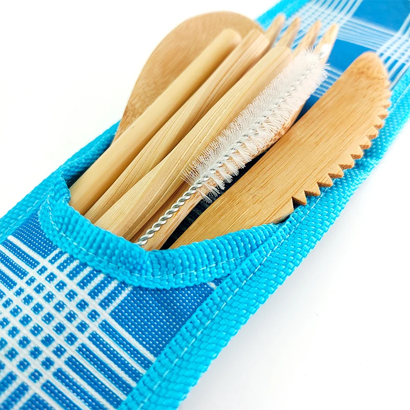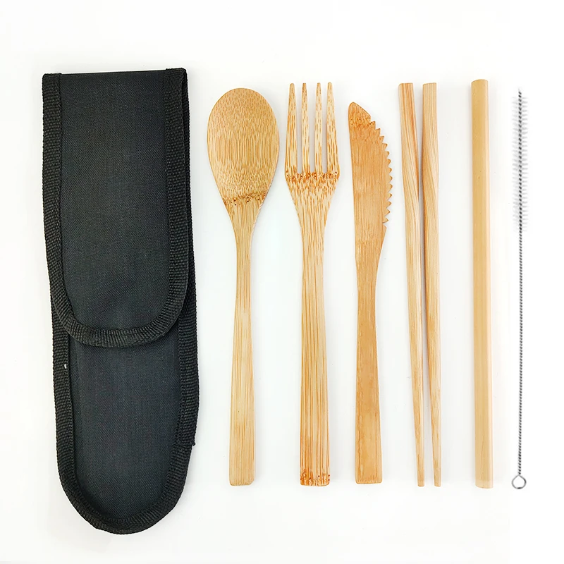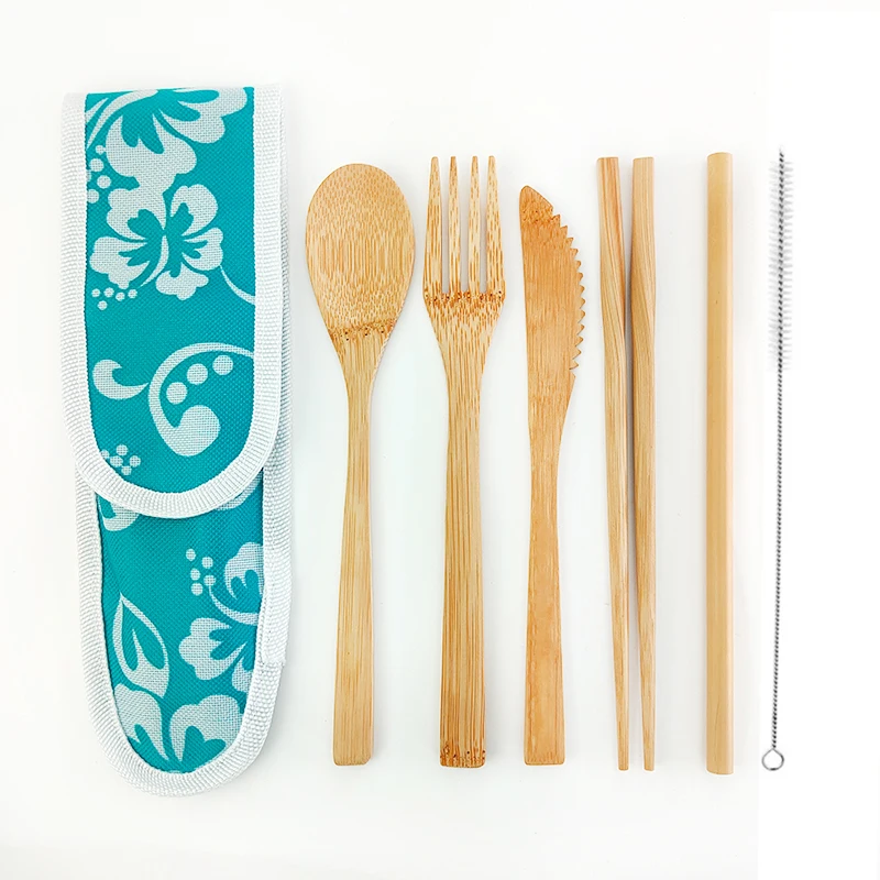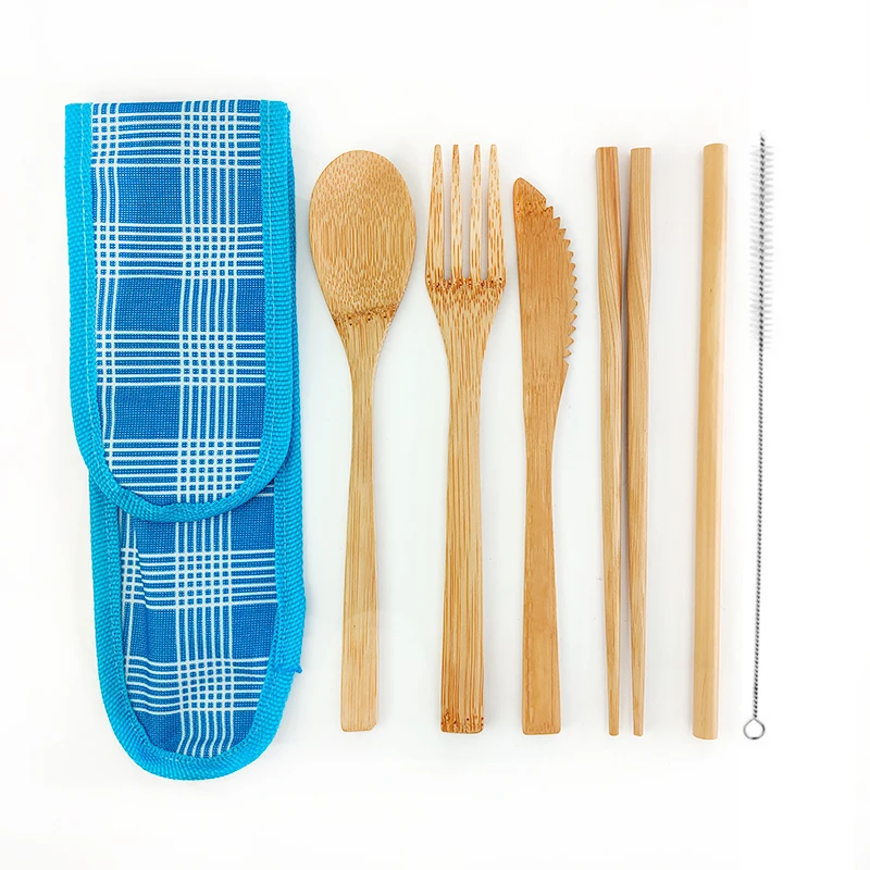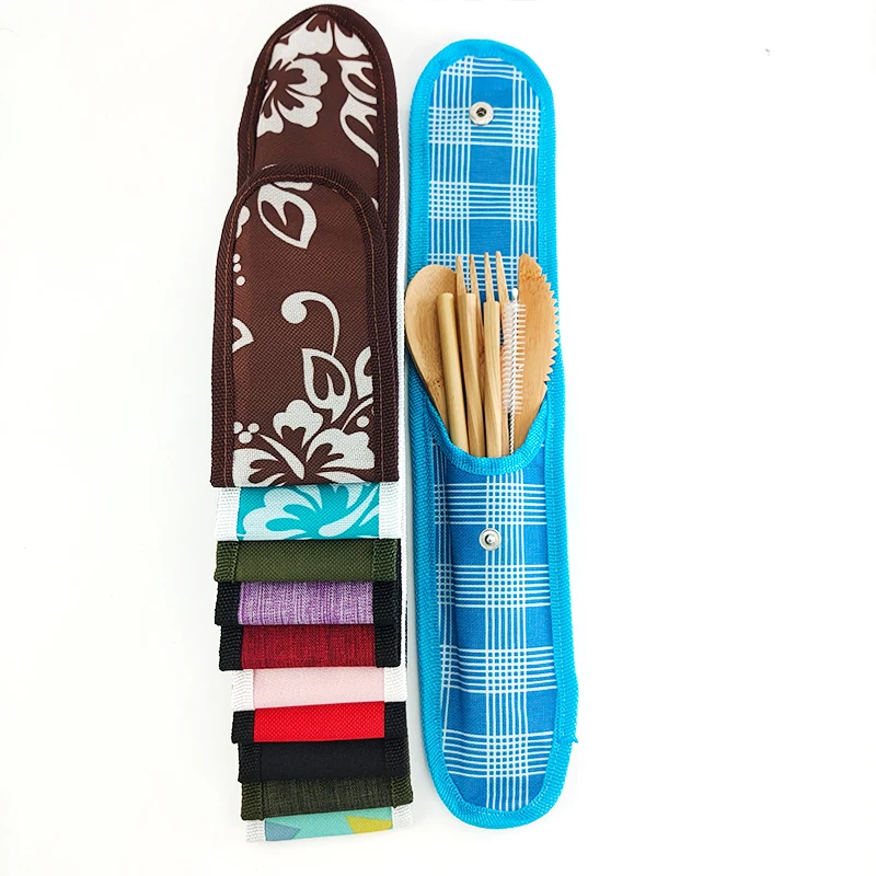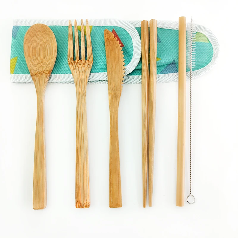 Набор деревянных столовых приборов, бамбуковые столовые приборы, соломенные столовые приборы с тканевой сумкой, кухонные бамбуковые столовые приборы, 1 шт. или 6 шт.