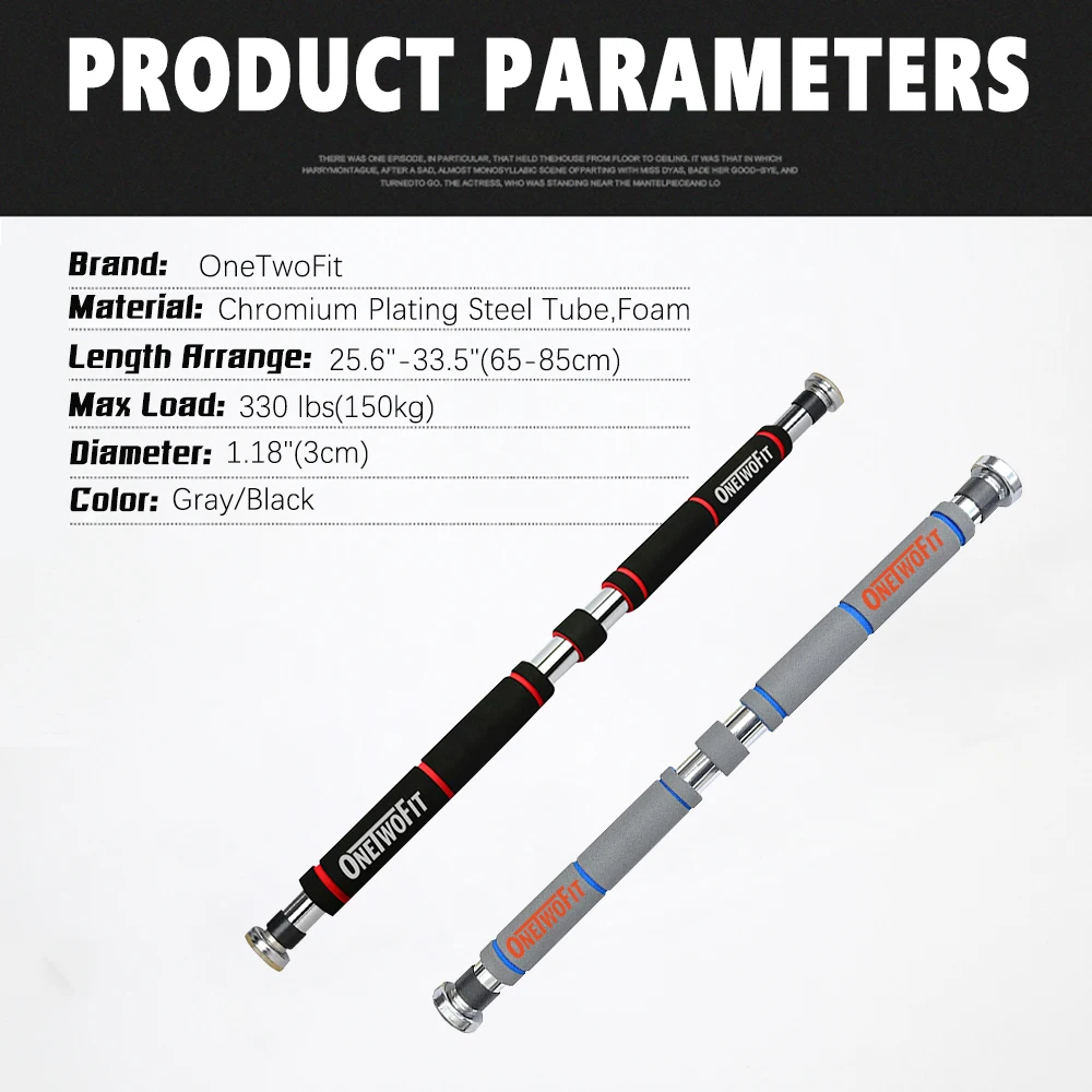 Бренд: ONETWOFIT Материал: хромированная стальная труба. Пена Длина: 25,6 ''-33,5''(65-85 см) Максимальная нагрузка: 330 фунтов Диаметр: 1,18 ''(3 см) Цвет: серый/черный