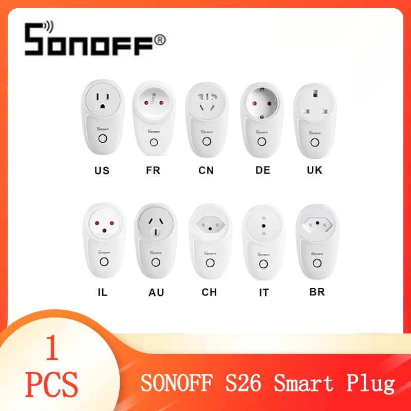 Умная вилка Sonoff S26-это Wi-Fi со стандартом ЕС, США, Великобритании, Китая, Австралии. Пользователь может мгновенно конвертировать любой штекер в интеллектуальную розетку с удобной функцией таймера, которая работает на смартфоне пользователя. С помощью этого умного гнезда вы можете включить/выключить любое подключенное устройство либо в приложении eWeLink, либо нажав ручную ручку управления вилкой Wi-Fi. Это позволяет задать таймер обратного отсчета/Графика/таймеры для автоматического включения/выключения розетки с Wi-Fi управлением в приложении. Вы можете поделиться вилкой Wi-Fi с семьей, чтобы вы могли управлять вместе. Просто подключите устройство и займите минуту, чтобы настроить, вы сможете управлять освещением и бытовой техникой из любой точки мира в любое время.