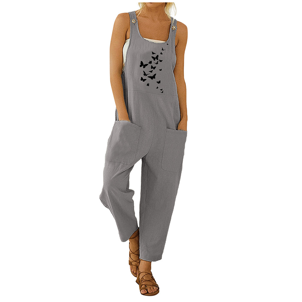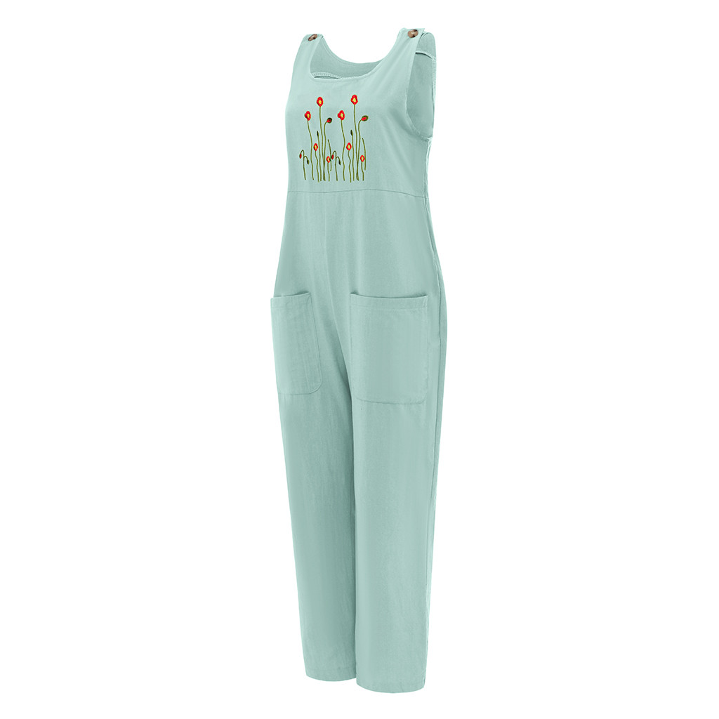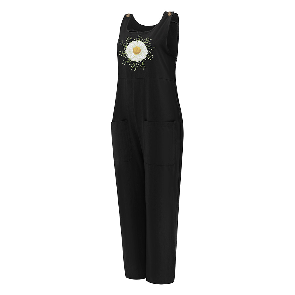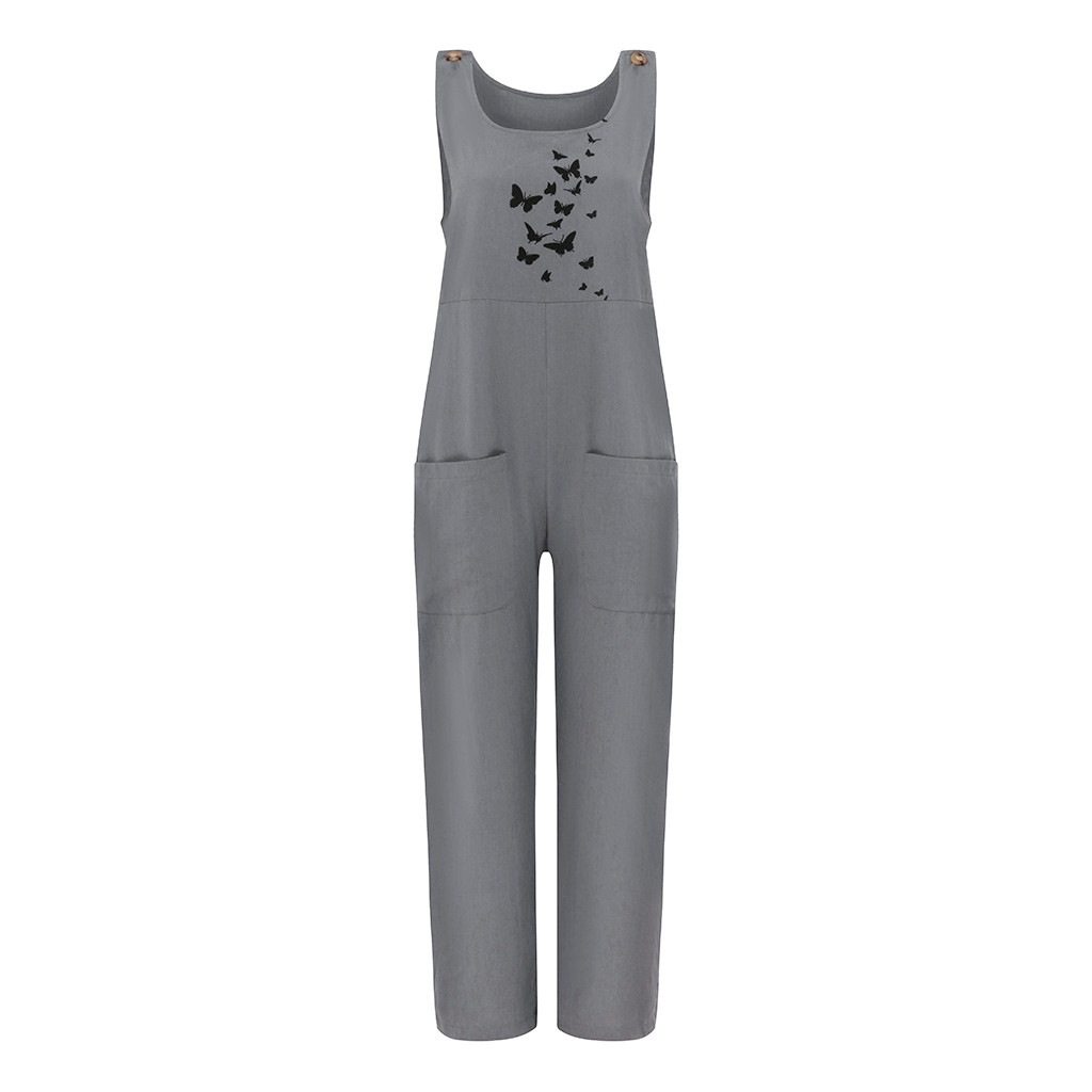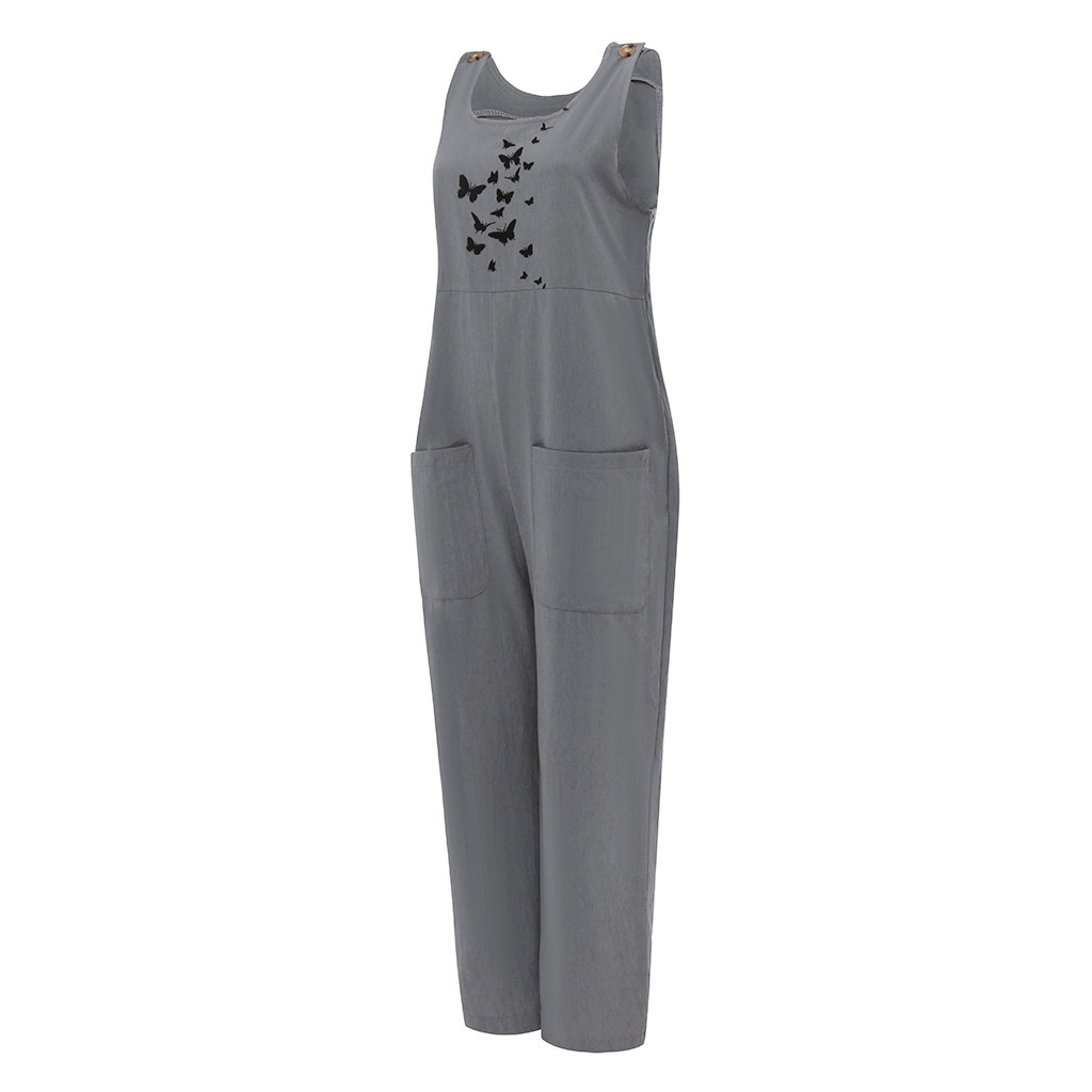Женский Повседневный комбинезон в стиле бохо с принтом рыбы, с карманами, длинный комбинезон на бретелях, комбинезон с пуговицами