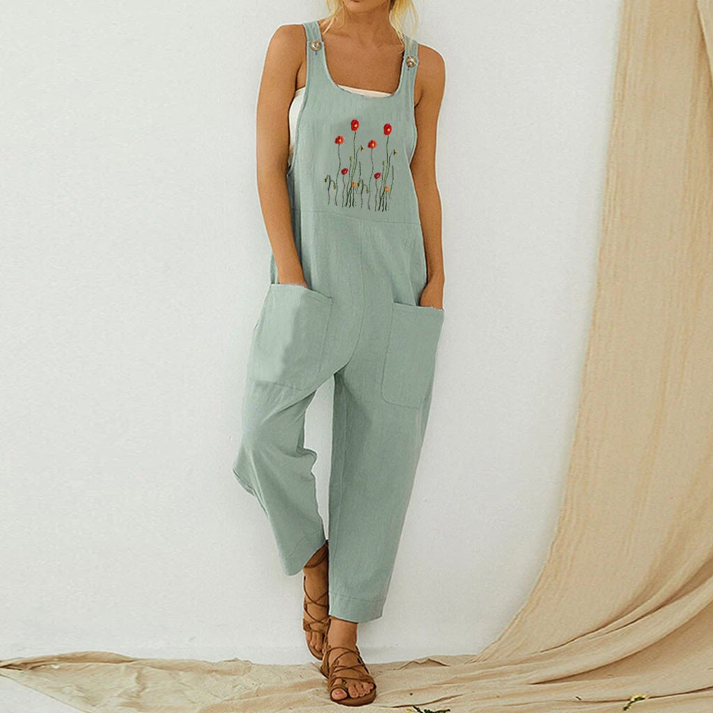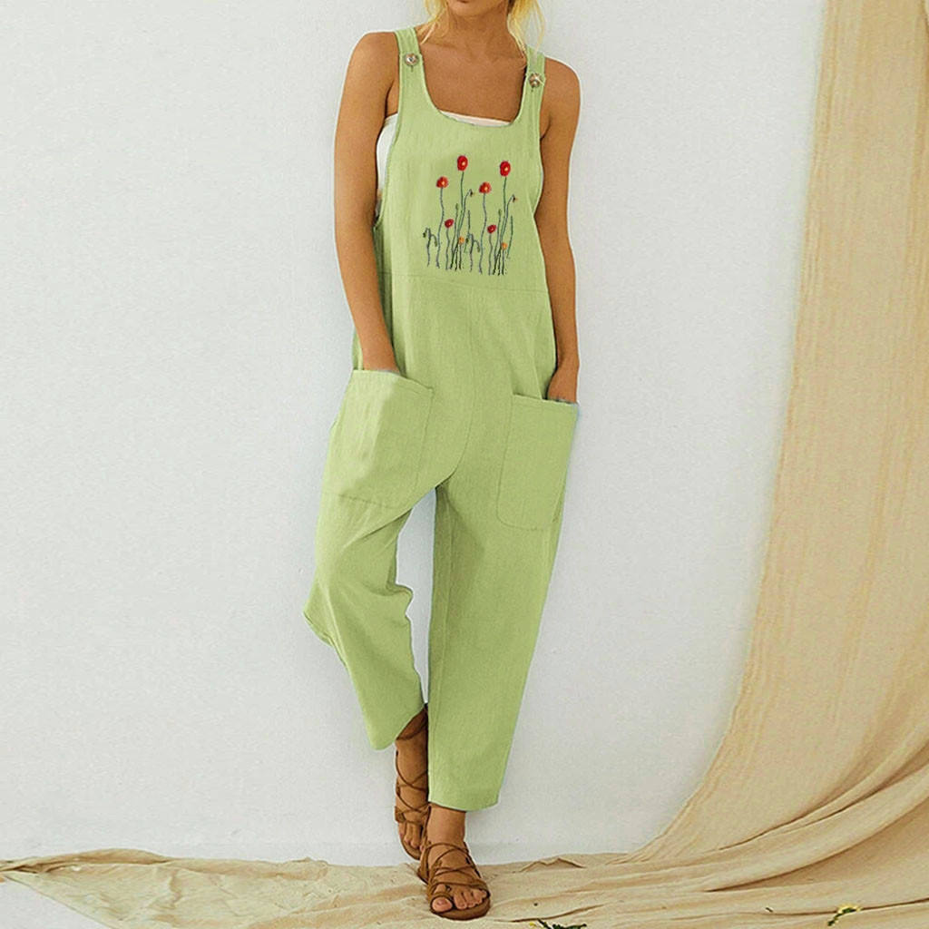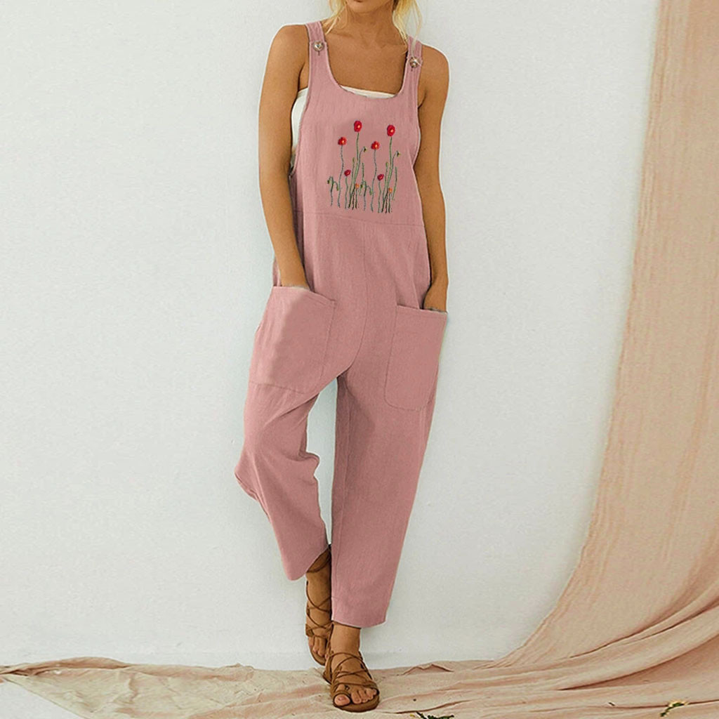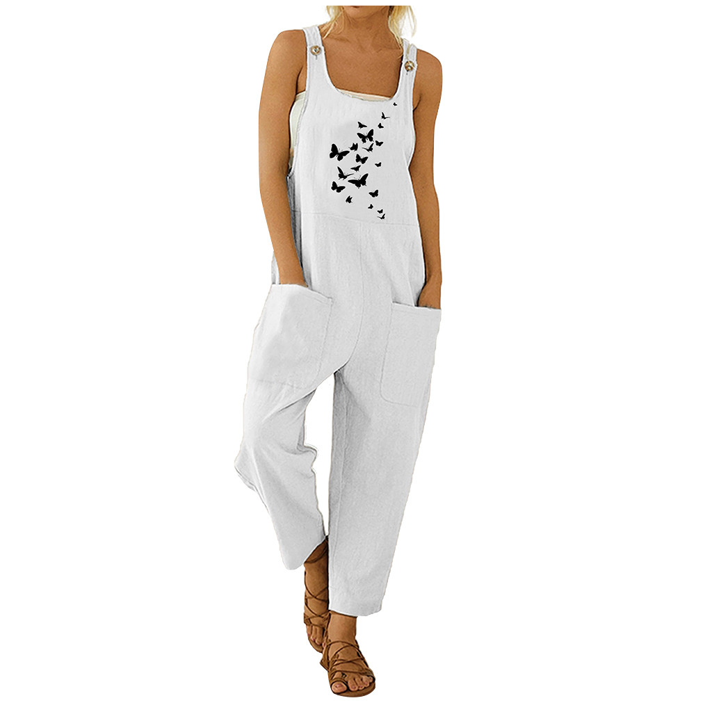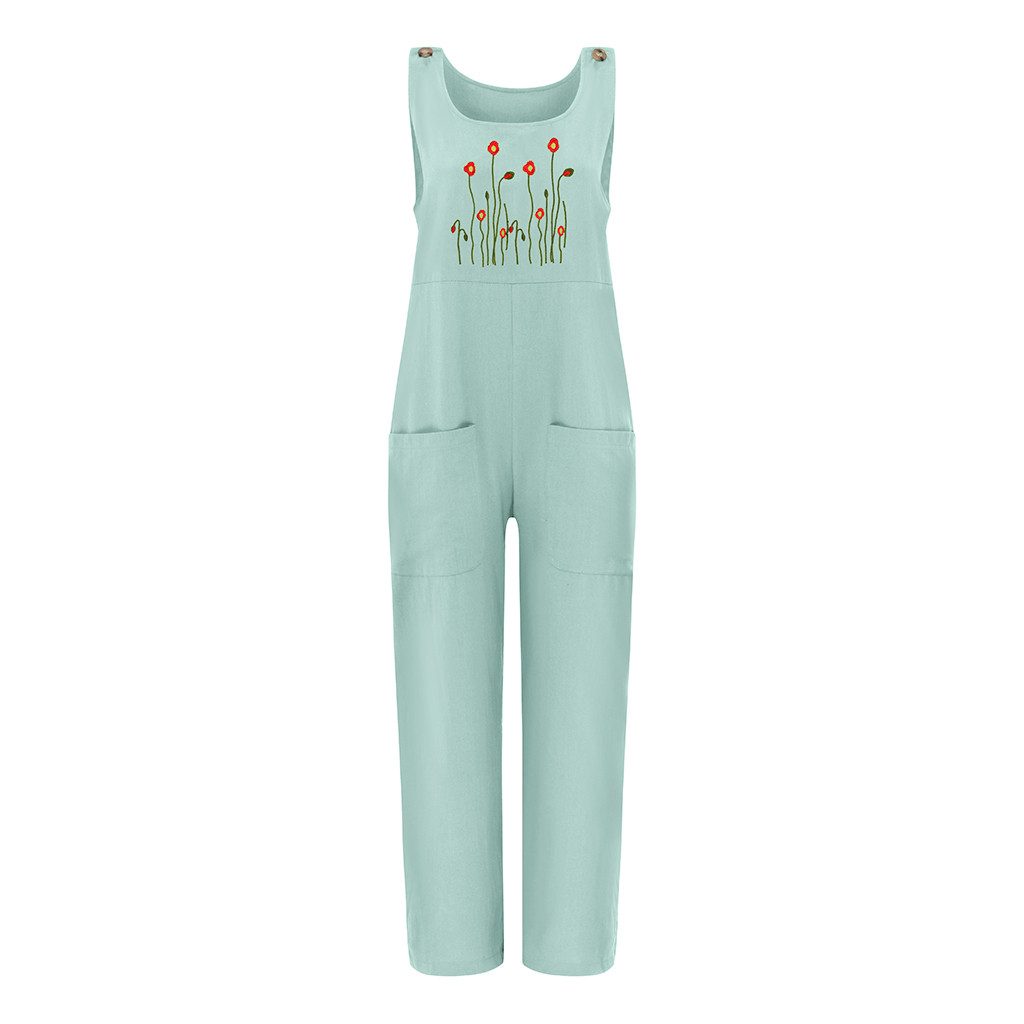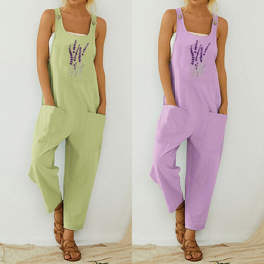 Женский Повседневный комбинезон в стиле бохо с принтом рыбы, с карманами, длинный комбинезон на бретелях, комбинезон с пуговицами