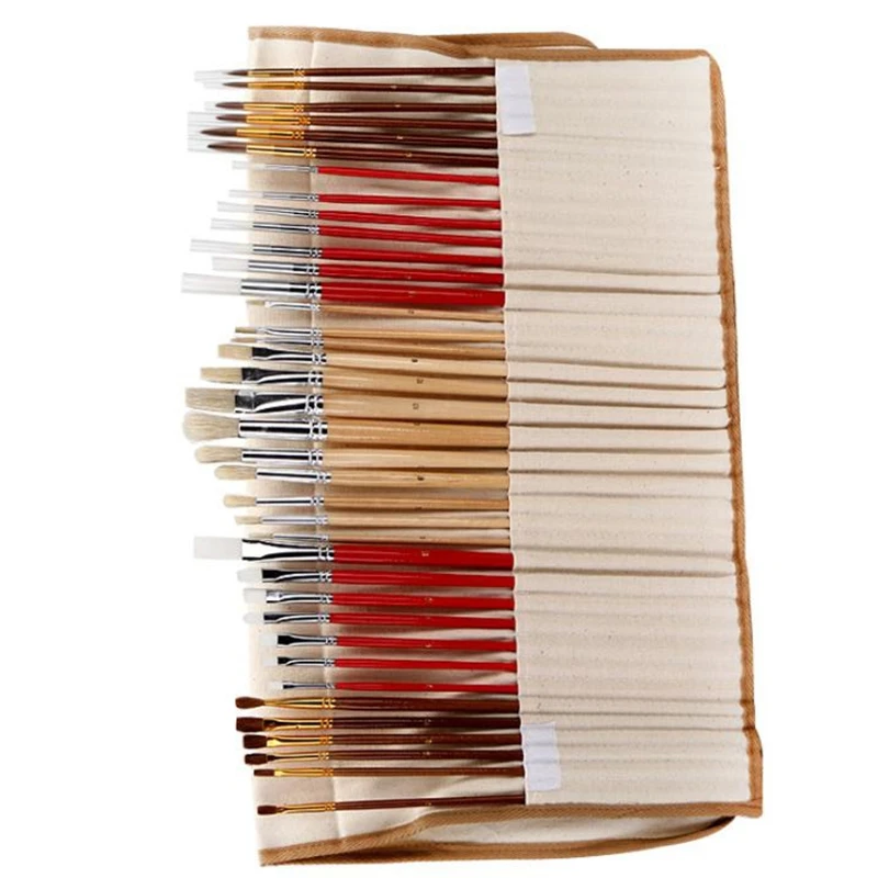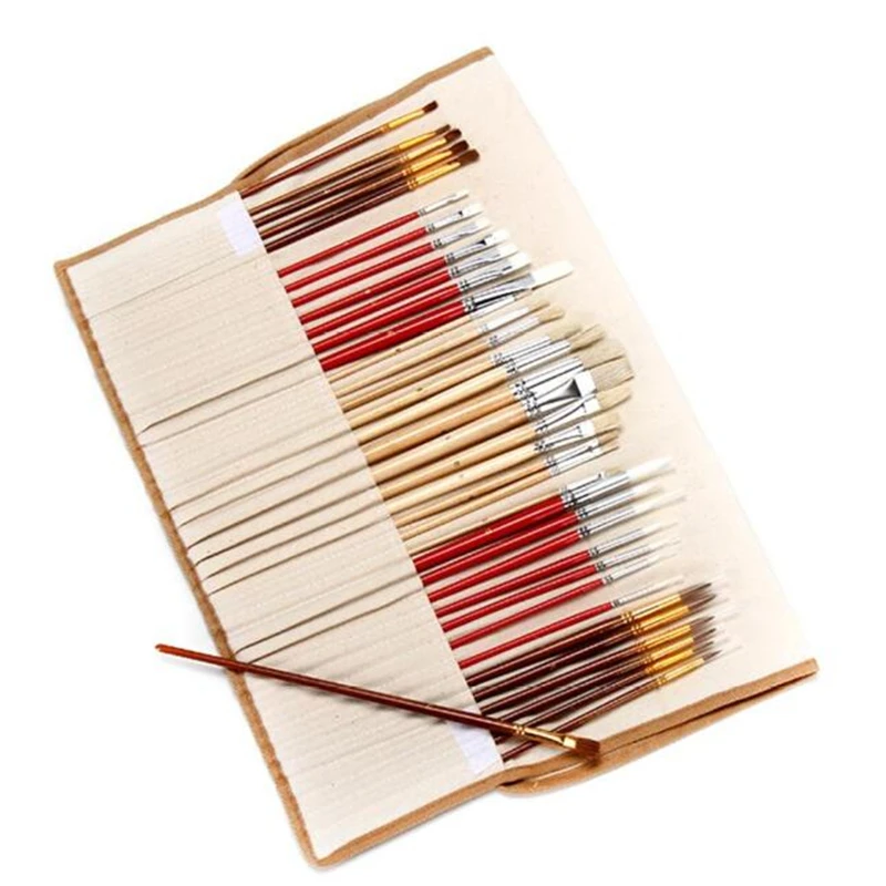 38 шт набор кистей для рисования с холщовой сумкой для масляной акриловой акварельной живописи длинные деревянные ручки многофункциональные принадлежности художественные Кисти Описание:
