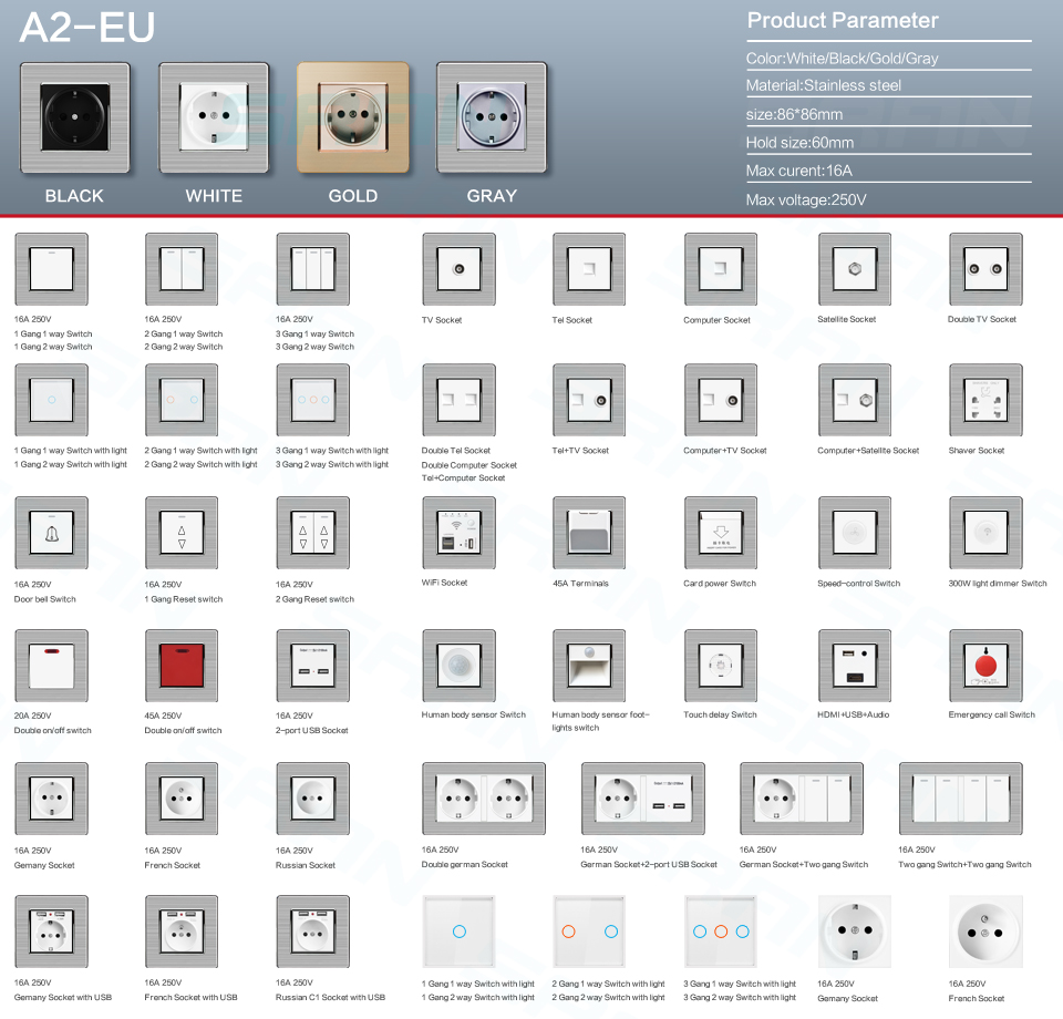 SRAN Франция двойная рамка розетка 16A 220 В белый/черный панель из нержавеющей стали 146 мм * 86 мм домашнее романтическое украшение розетка питания