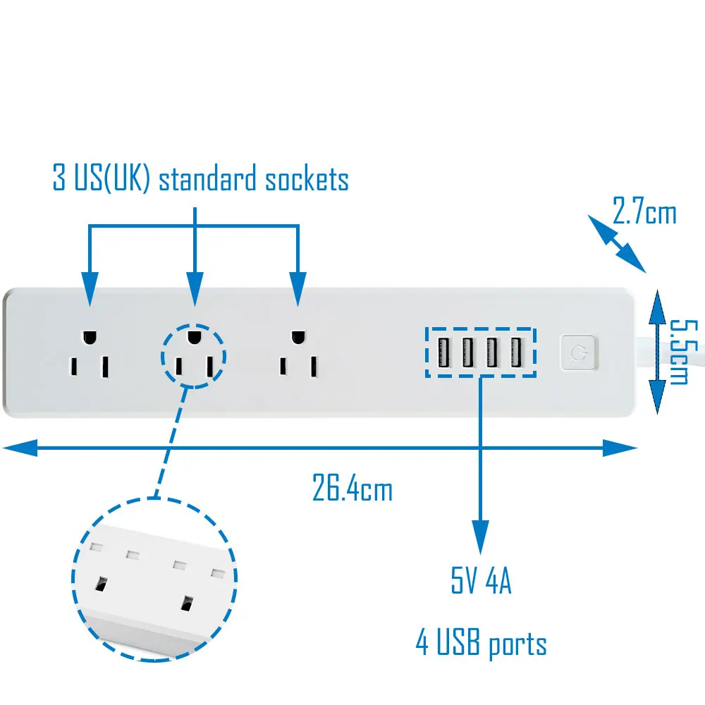 Умная Wifi полоса питания несколько таймеров розетки стандарт Великобритании США розетки 4 USB порта для зарядки голосовой пульт от Google Home Alexa