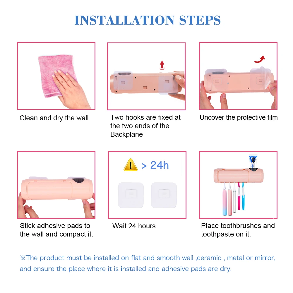Особенности: 1. После запуска машины УФ-свет будет продолжать светить 12 минут 2. Подходит для большинства видов зубной щетки 3. Можно поставить 5 зубных щеток одновременно 4. Устранение 90% вирусов и бактерий 5. Легко чистится, но не кладите его в воду или не распыляйте его непосредственно водой 6. Настенный стерилизатор может сэкономить место 7. Простота в эксплуатации просто поместите зубную щетку в нее, а затем нажмите кнопку start 8. Он имеет встроенный вентилятор и батарею 9. Нажмите его переключатель, начиная работать в течение 8 минут автоматически, индикатор показывает синий при работе. 10. Остановка стерилизации сразу же после открытия крышки. Упаковочный лист: 1 * Tootnbrush стерилизатор 1 * Зарядное устройство usb (без разъема, так что USB версия может соответствовать любой стране использования, вы можете подключить к любому usb-порту для зарядки) 1 * Прочная наклейка 1 * Винт сумка для инструментов 1 * Hangong борад 4 * различный дизайн наклеек