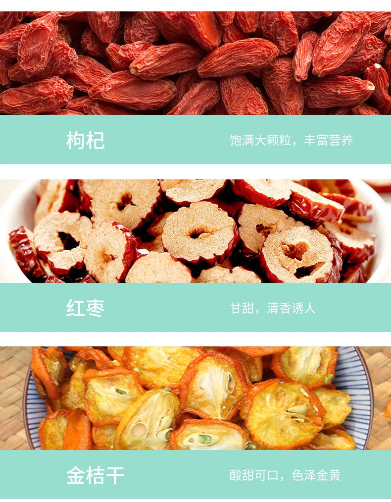 Ba bao cha, как его название, согласно Традиционному рецепту, этот травяной чай включает в себя 8 видов материала следующим образом: longan, jujube, ягоды годжи, розы, хризантемы, изюм, сушеный кумкват, И рок-конфеты, и они упакованы отдельно, легко взять.
