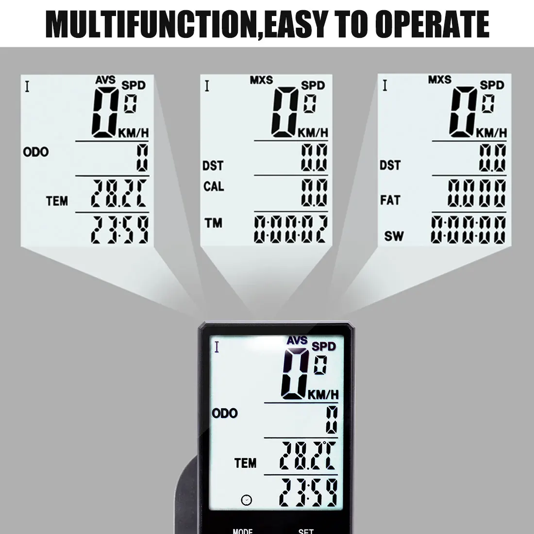 Функции 2,22: функция хранения данных (может использоваться на двух транспортных средствах одновременно, может переключаться на данные использования двух транспортных средств) трендовая полоса текущей скорости, текущая скорость вождения (0-99,9 км) общий пробег вождения, одиночный пробег, максимальная скорость вождения, средняя скорость, время вождения, часы (Переключение на 12/24 часов) секундомер, потребление калорий, потребление жира, температура, автоматический выключатель, светящаяся функция, функция энергосбережения, функция напоминания о обслуживании, настройка миль, НАСТРОЙКА ОКРУЖНОСТИ ШИН, начальное значение общего пробега устанавливается, и функция напоминания о низком заряде батареи. При начале езды датчик движения автоматически будит секундомер и автоматически выключается при остановке.