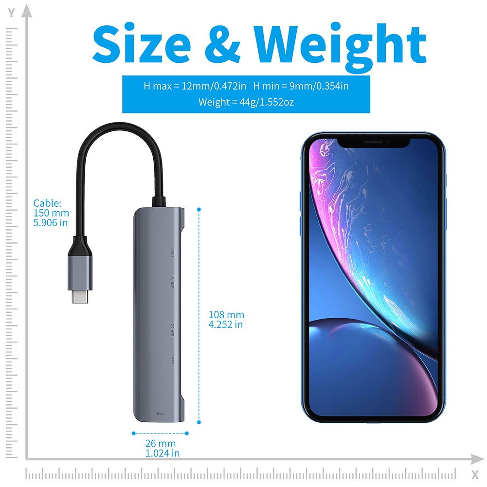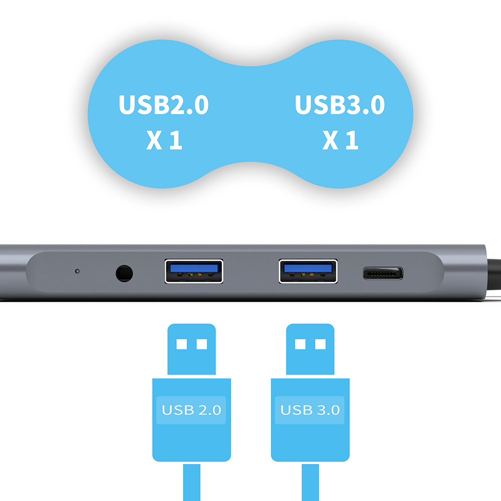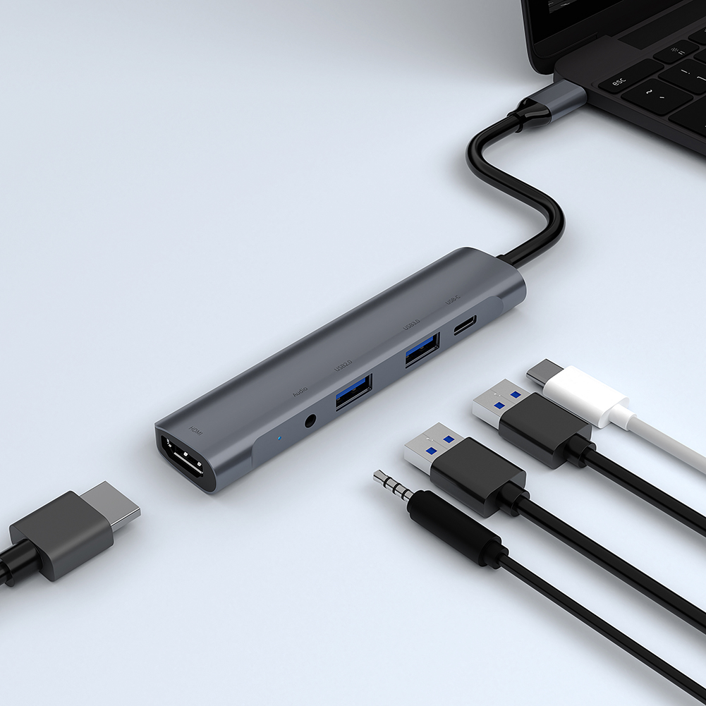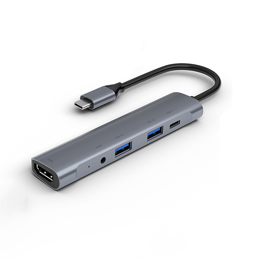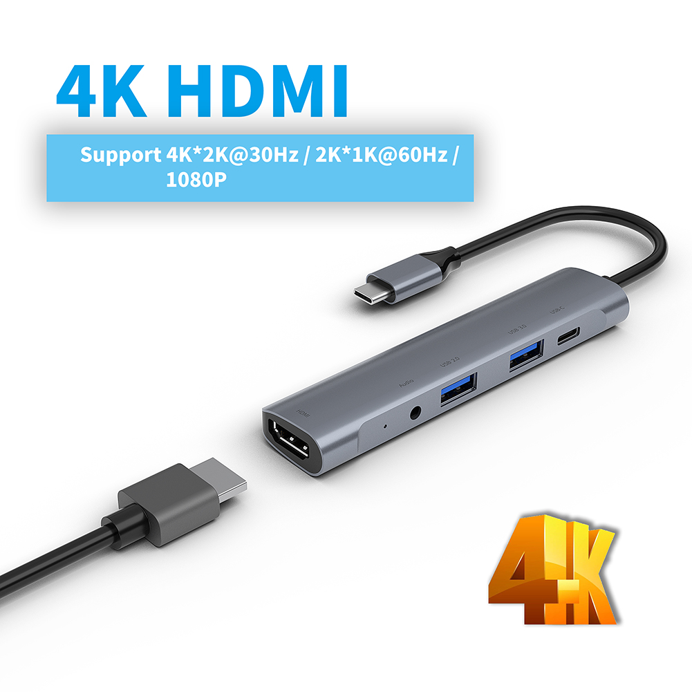 * 2. Многофункциональный 5 портов, 1x4K HDMI, 1x USB-C, 1x аудио, 1x USB 3,0, 1x USB 2,0.
