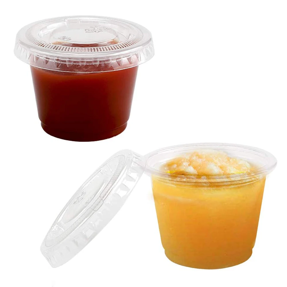 Одноразовые пластиковые чашки Jello Shot с крышками, суфельная порция/соус, салатная заправка, чашки для приправ, 100 комплектов, 1 унций
