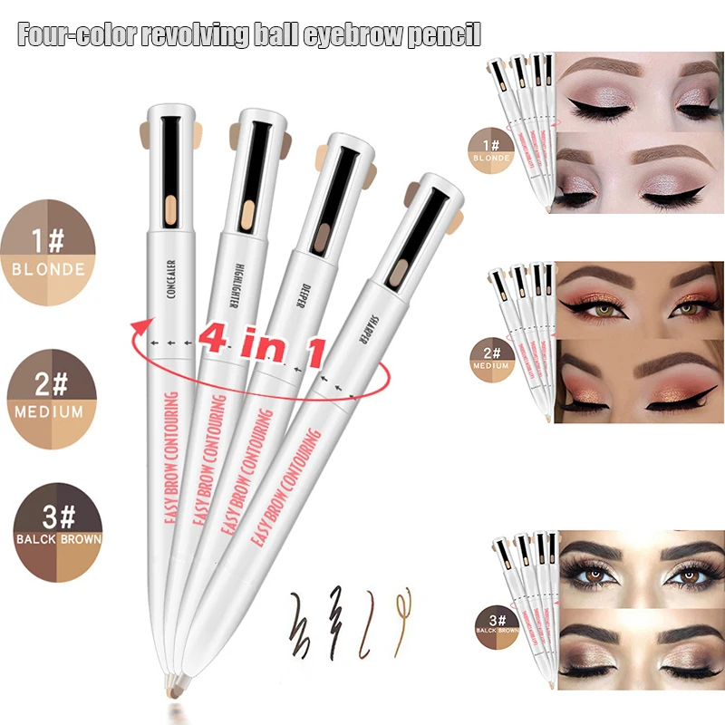 1.4-в-1:Карандаш 4 в 1 с автоматическим поворотом для бровей позволяет создавать идеальную форму бровей с глубиной, размером и профессиональным видом. Доступны различные оттенки, подходящие для всех цветов волос и оттенков кожи.